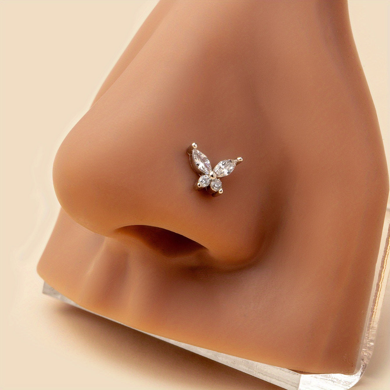 This nose ring features a zircon inlaid design of a butterfly and bee, perfect for animal theme lovers.