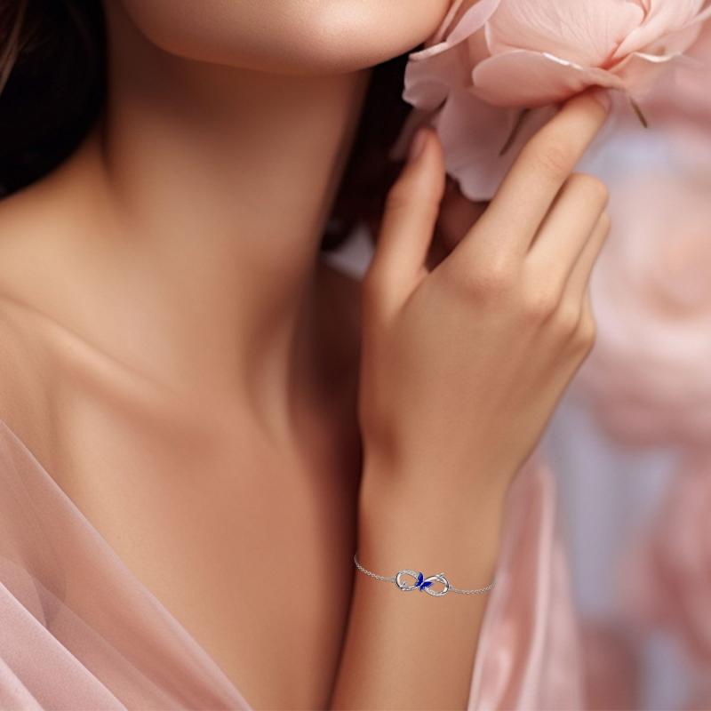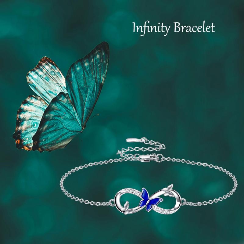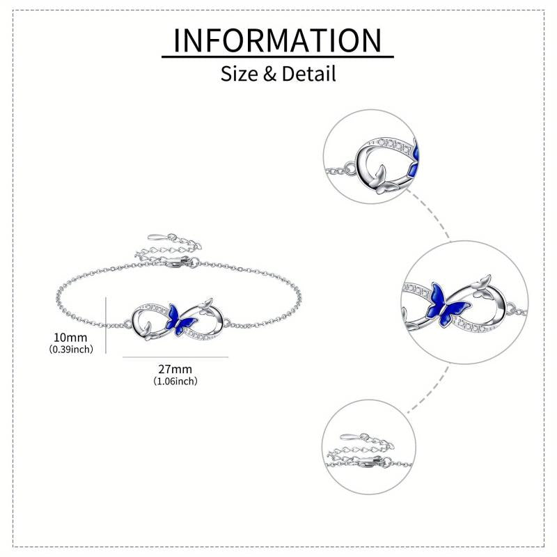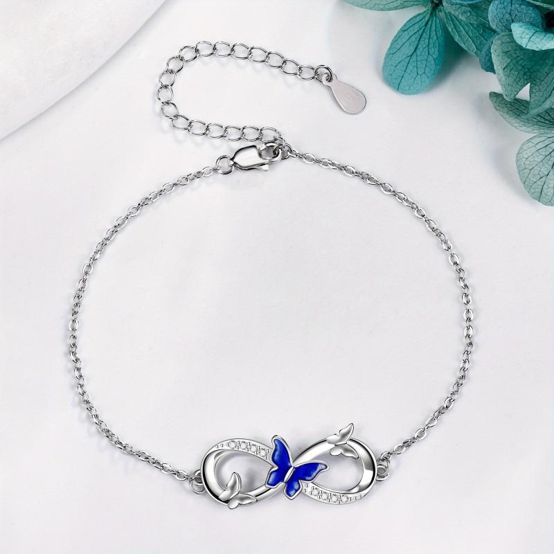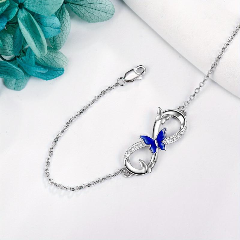 This stunning butterfly bracelet is crafted from 925 sterling silver. The infinity design adds a touch of elegance to any outfit, making it a perfect accessory for women who love butterflies.