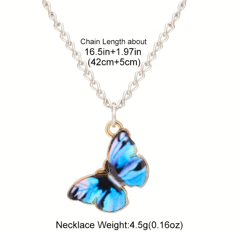 Add a pop of color to your outfit with this butterfly shape pendant necklace. The adjustable dainty chain makes it easy to customize the length for a perfect fit.
