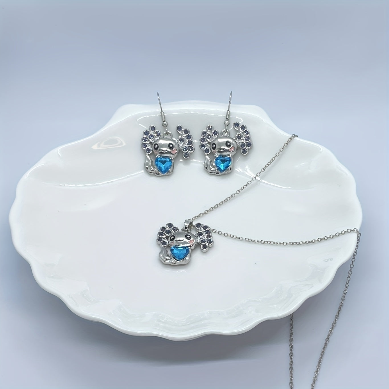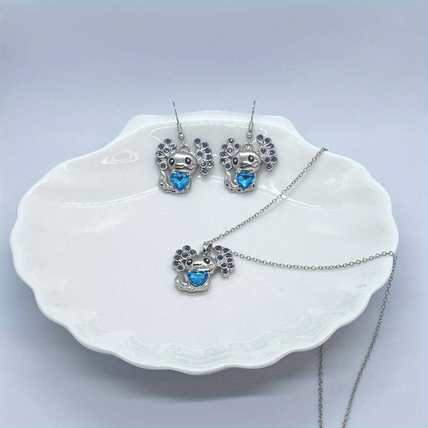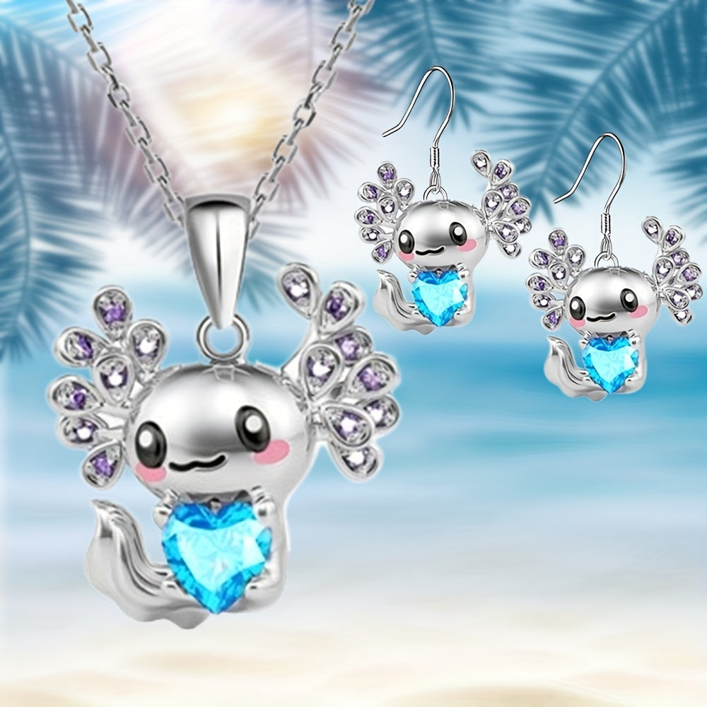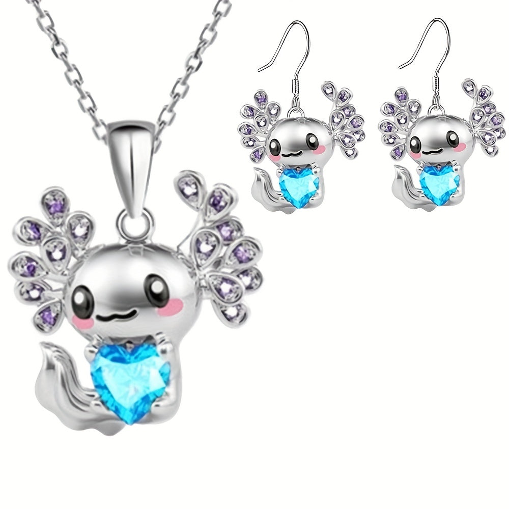 This adorable jewelry set includes 3 pairs of earrings and a necklace. Each piece features cartoon elements and shiny zircon inlays. Perfect for daily wear or as a sweet birthday gift for girls.