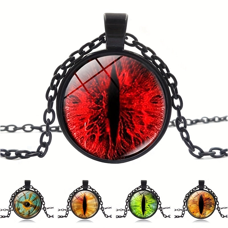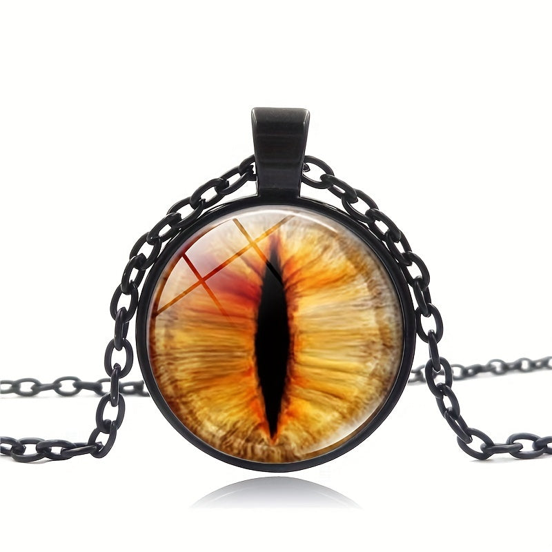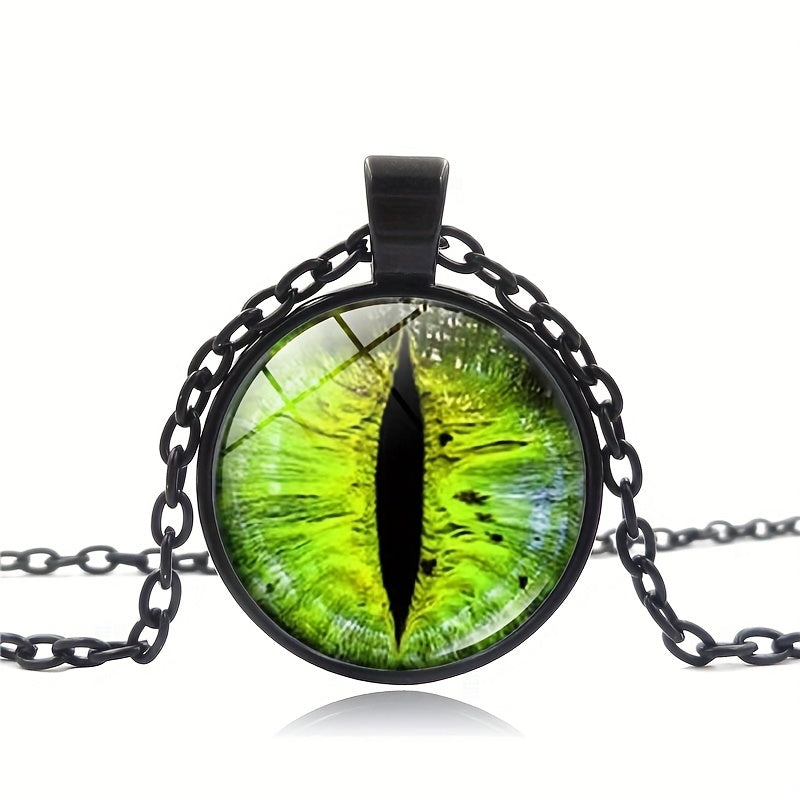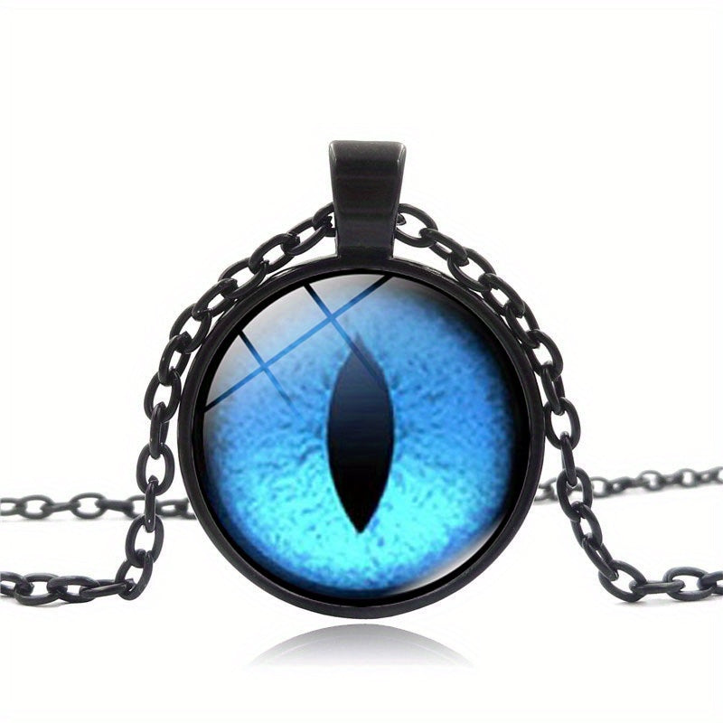 This vintage sweater chain necklace features a cat eye and dragon eye pendant, suitable for all genders and outfits.