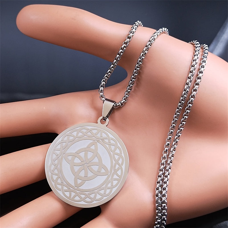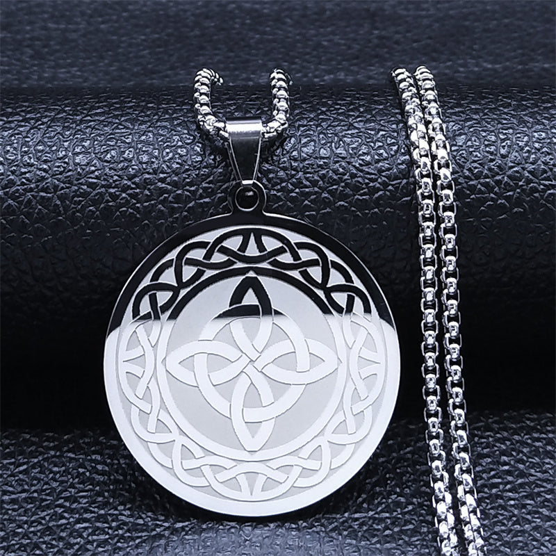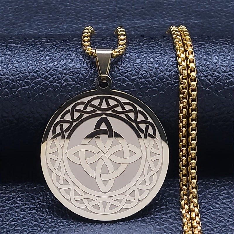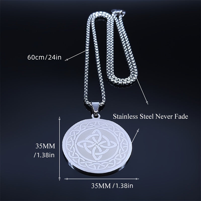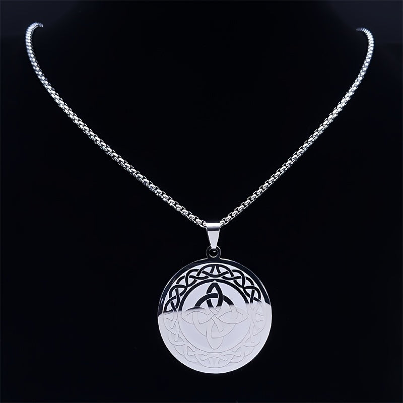 This Celtic knot pendant necklace is made of stainless steel, perfect for a Christmas gift. It is intricate and stylish.