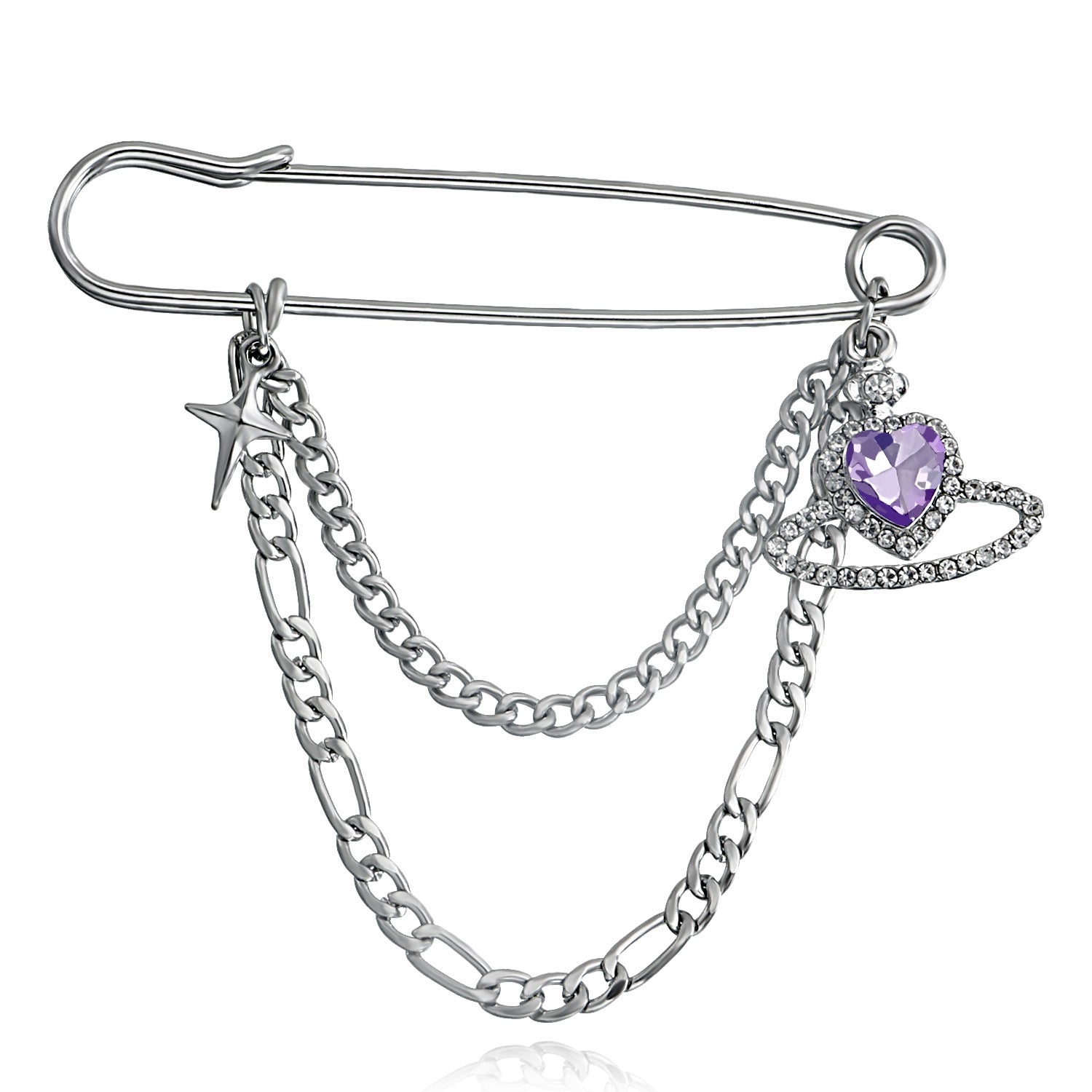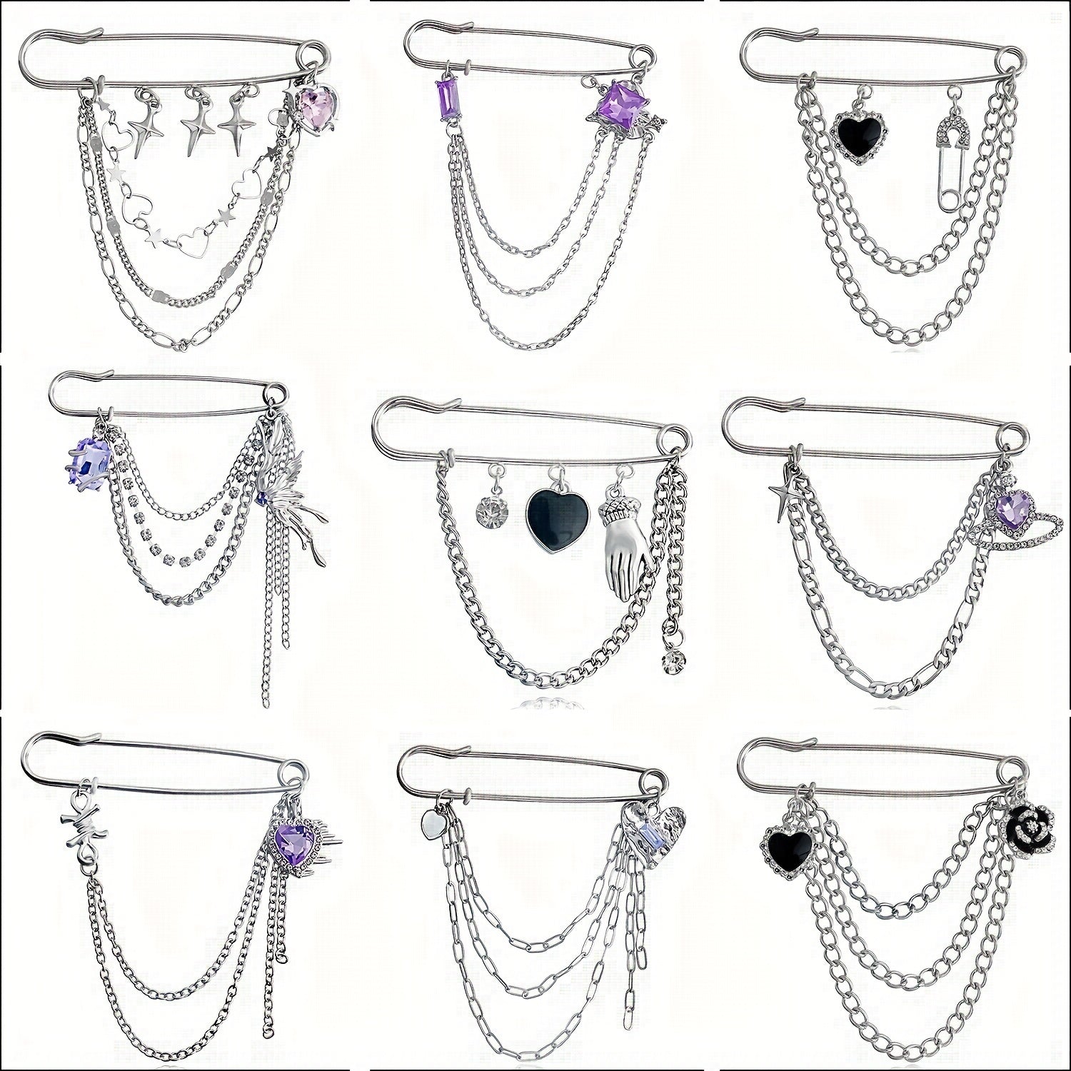 Enhance your outfit with these stylish and trendy chain brooches designed in hip hop style. Perfect for adding a bold touch to your suit jacket or any formal attire.