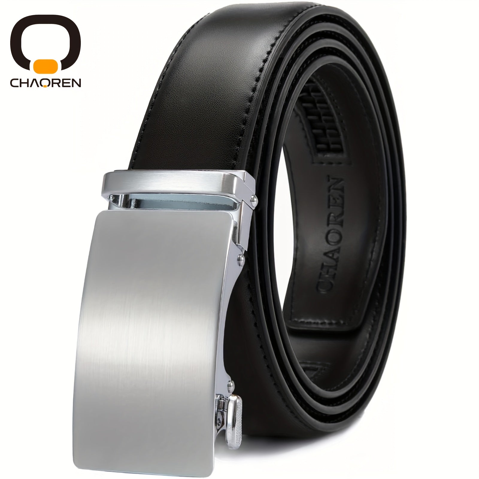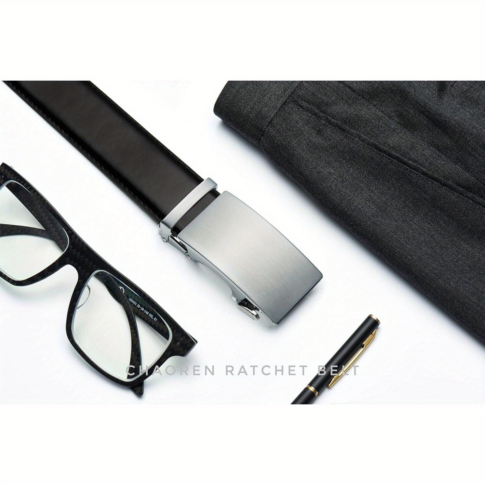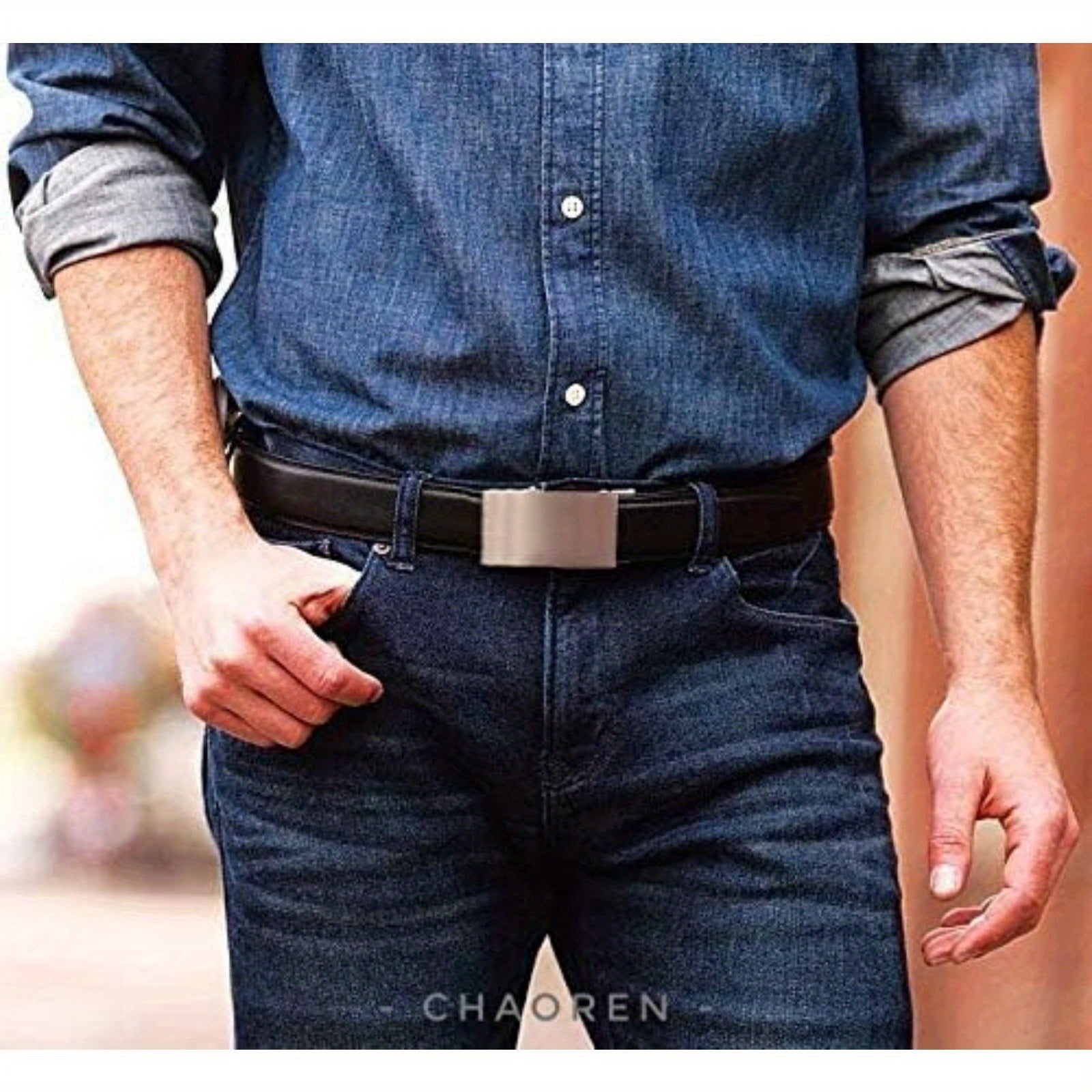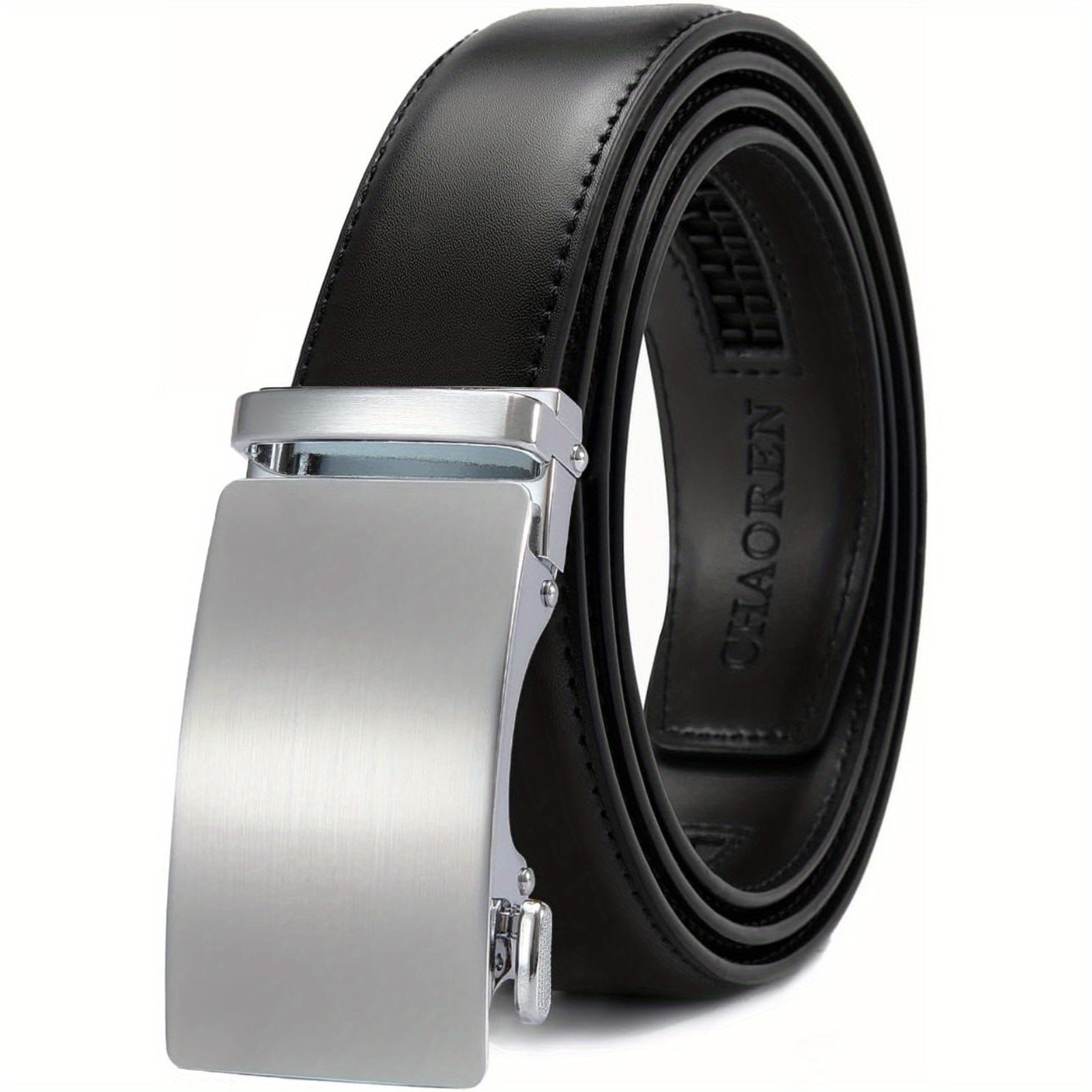 This men's belt is made of high-quality faux leather and features a micro-adjustable ratchet buckle. It is perfect for jeans and can fit everywhere.