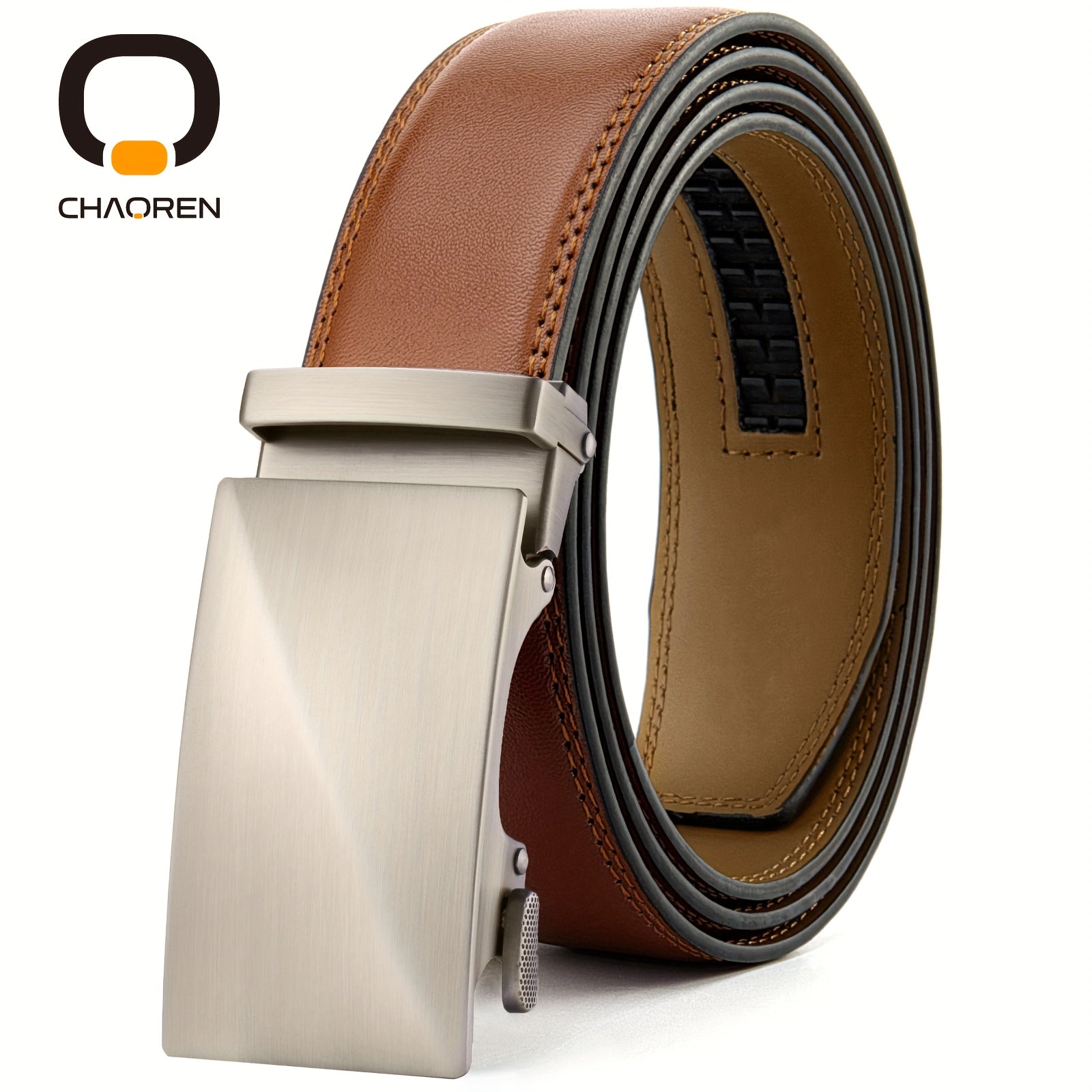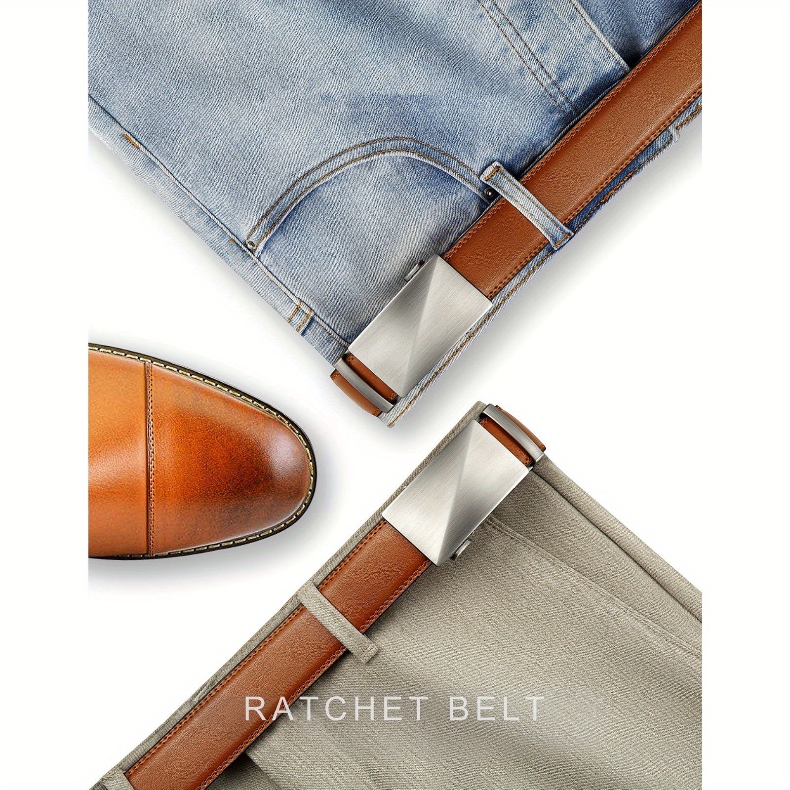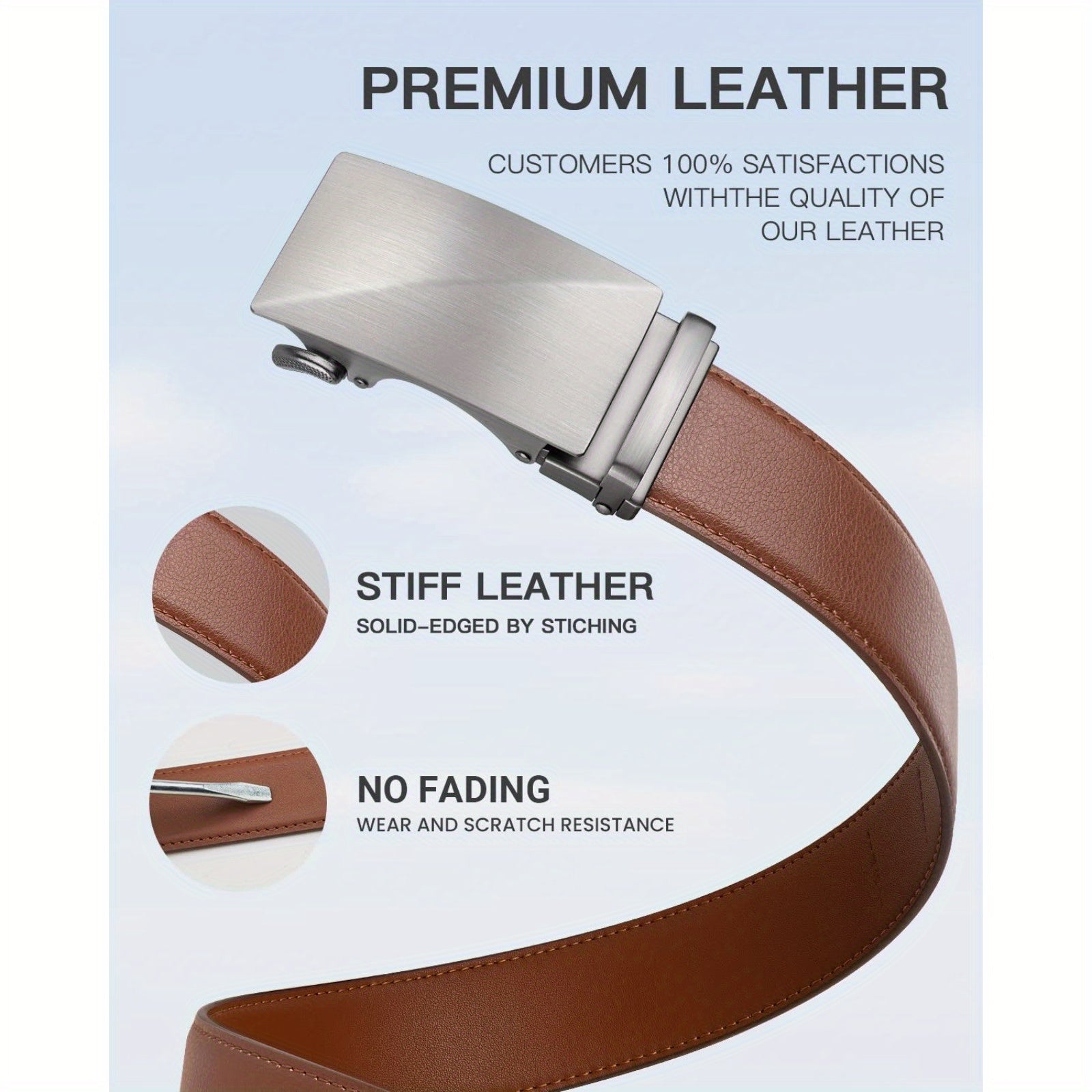 This men's belt is made of faux leather and features a micro-adjustable ratchet design. It is perfect for jeans and can fit anywhere.