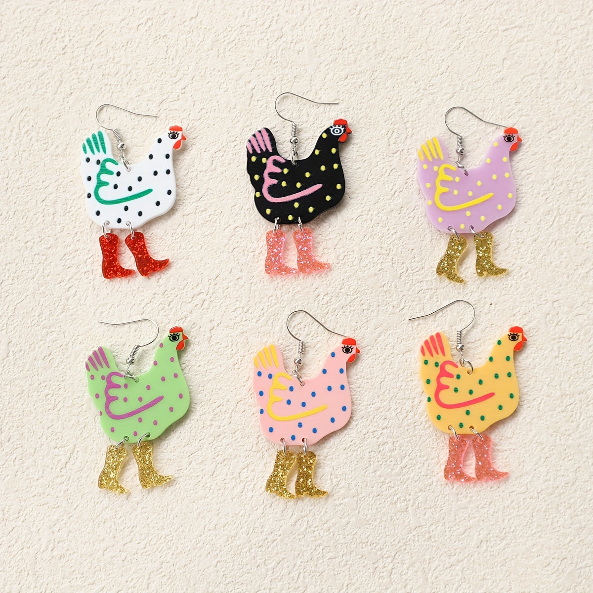 Add a touch of humor to your outfit with these funny chicken high heels acrylic earrings. Perfect for parties and events.