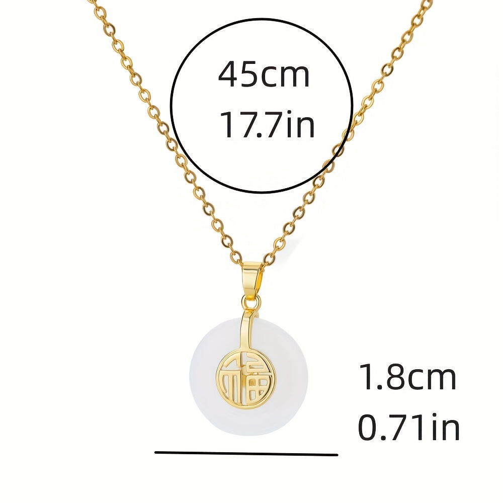 This exquisite necklace features a golden inlaid jade pendant with a Fu word design, symbolizing good luck and blessings. The Chinese style adds a touch of elegance and tradition to your outfit. Perfect for those seeking auspicious jewelry.