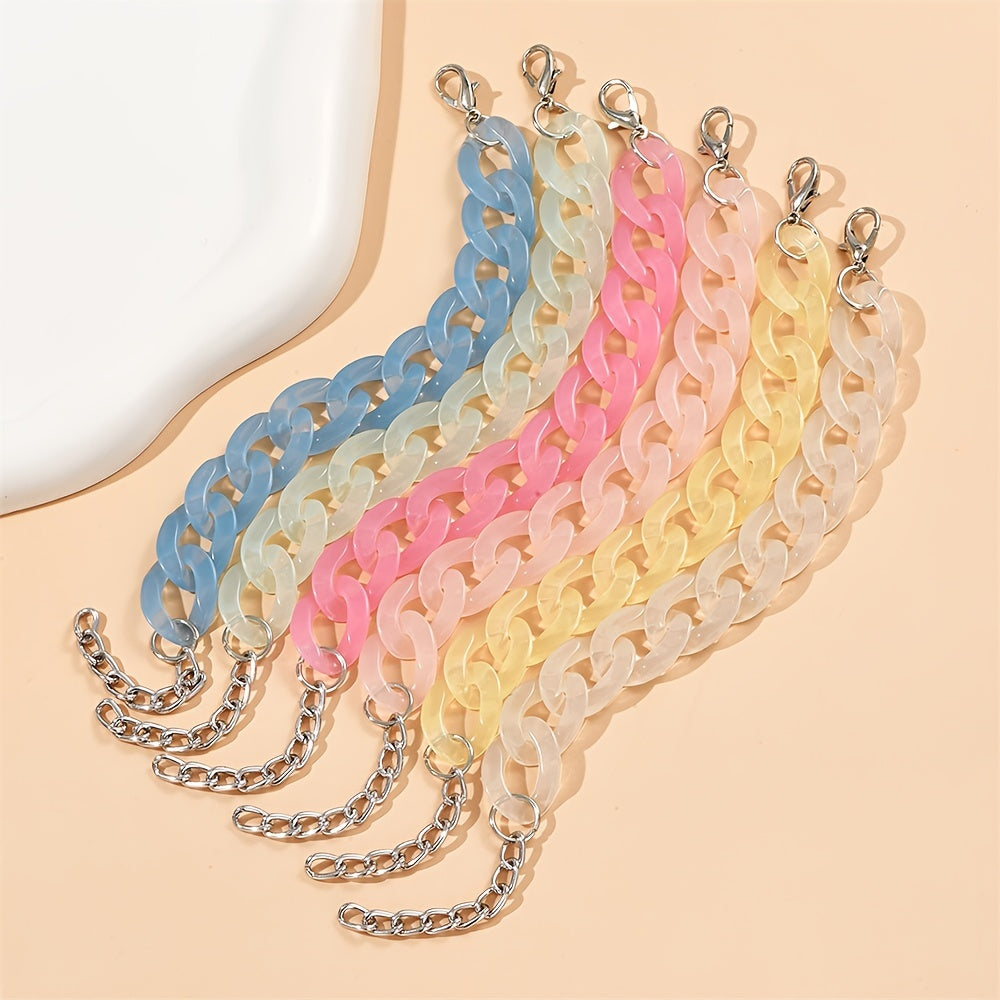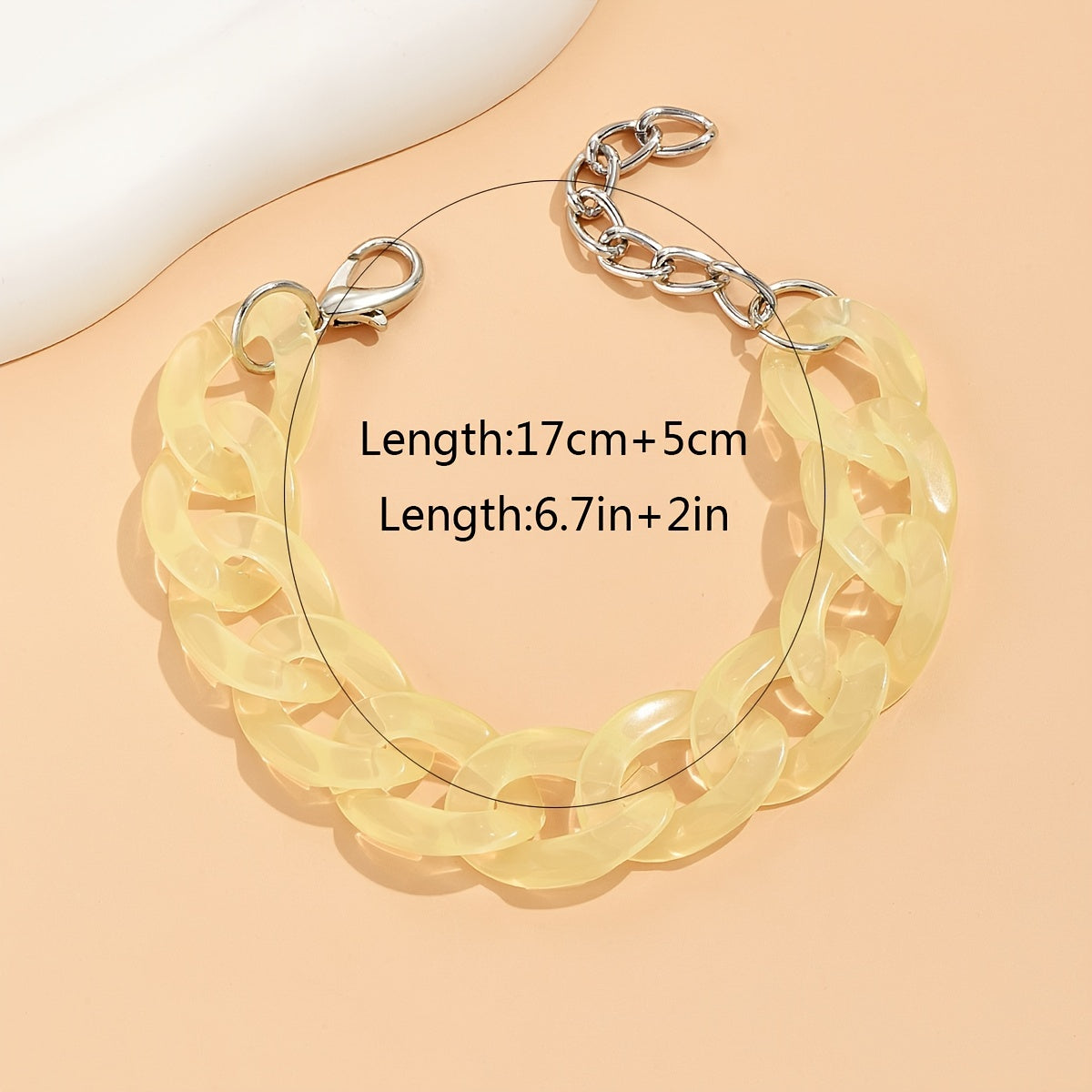 This chunky plastic chain bracelet is a sweet and colorful accessory for women and girls. The non-fading candy design adds a fun touch to any outfit. The bracelet is adjustable to fit different wrist sizes.