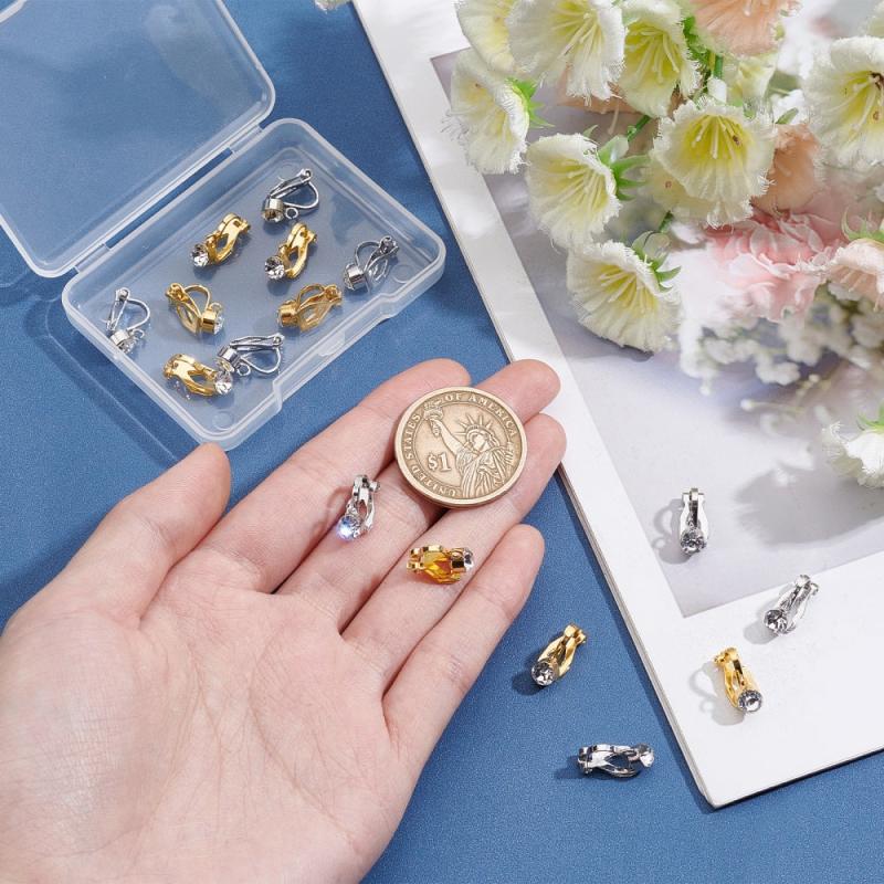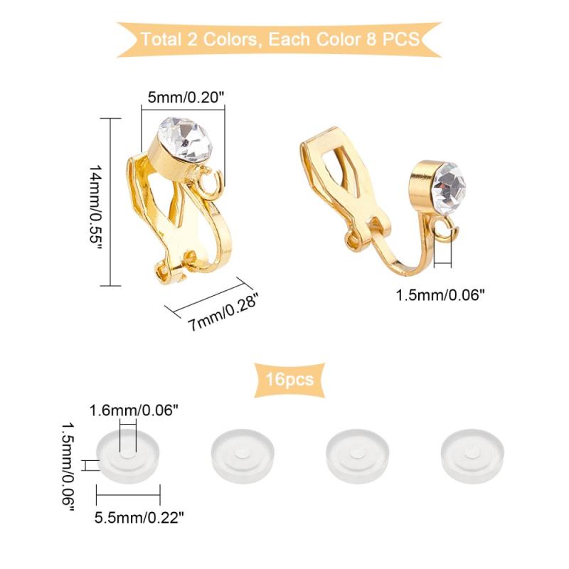 Upgrade your earrings with these clip-on converters that come in 2 colors. Made of brass with rhinestones for an elegant touch.