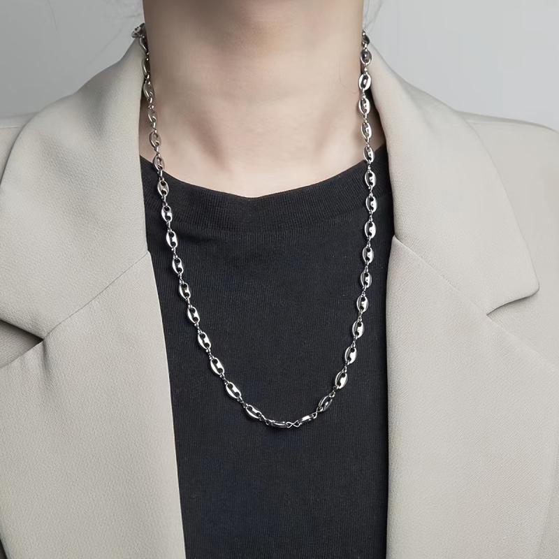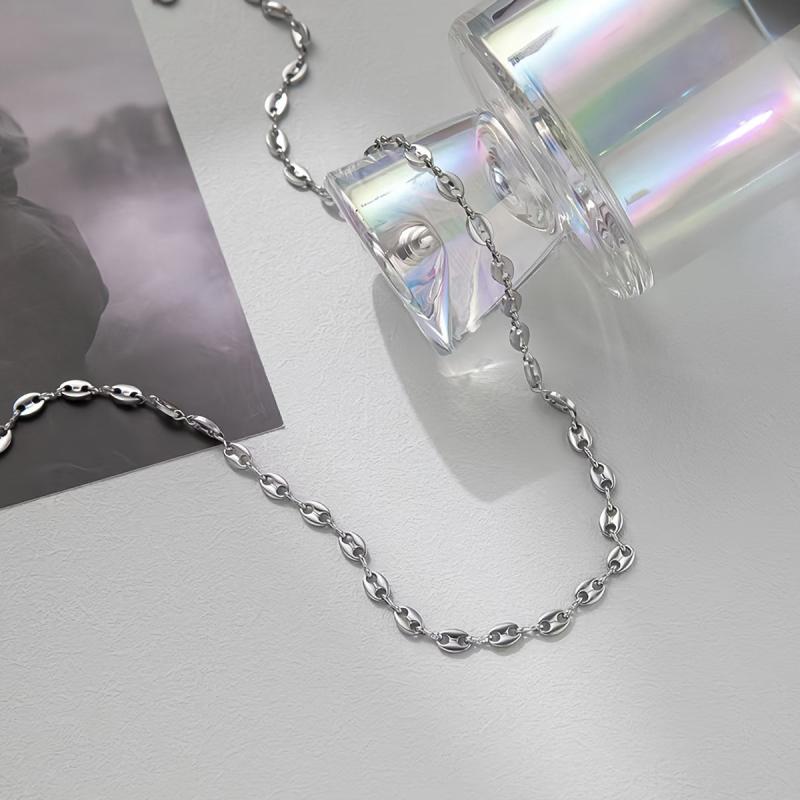 Add a touch of elegance to your outfit with this stainless steel coffee bean chain necklace. Features a pig nose oval design, perfect for European and American chain jewelry.
