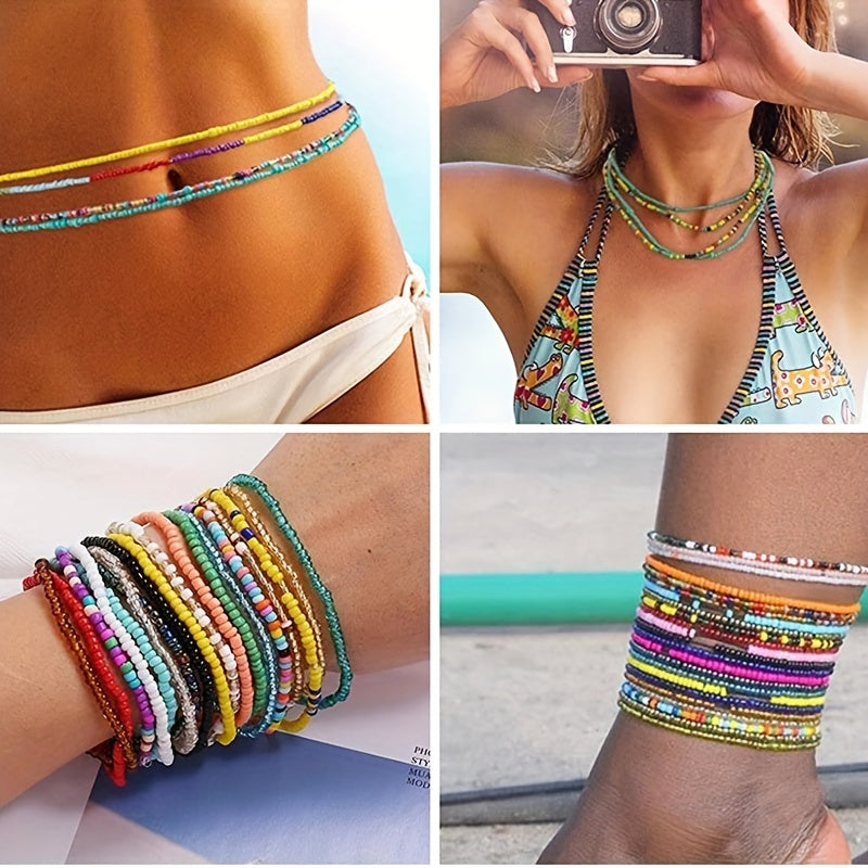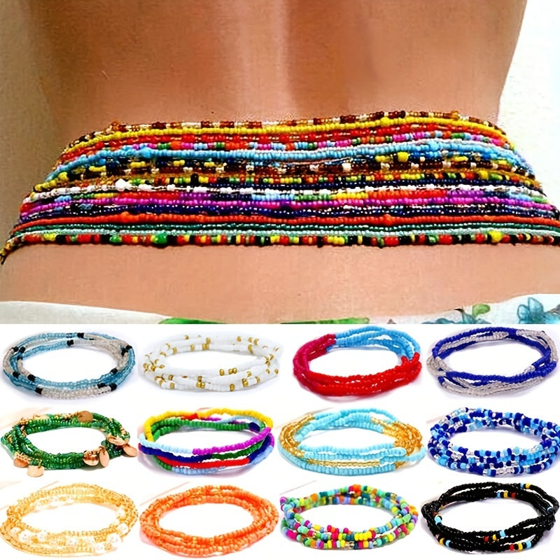 Elevate your beach look with this colorful beads waist chain that adds a touch of glamour and style to your bikini attire. Perfect for summer beach days.