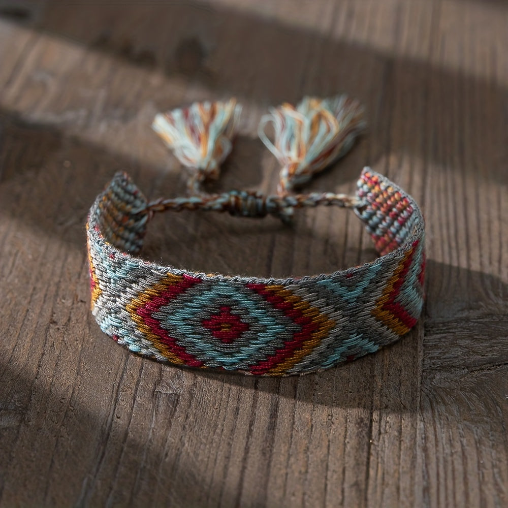 This stylish braided bracelet is perfect for daily wear or special occasions. It features a colorful design and stretchable fit, making it easy to put on and take off.