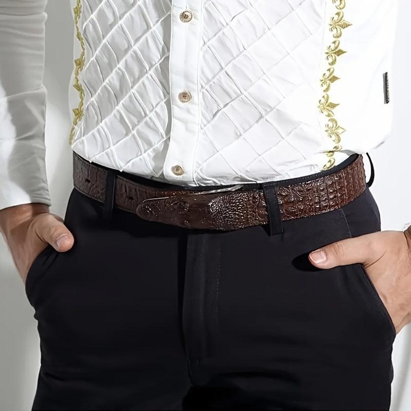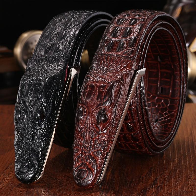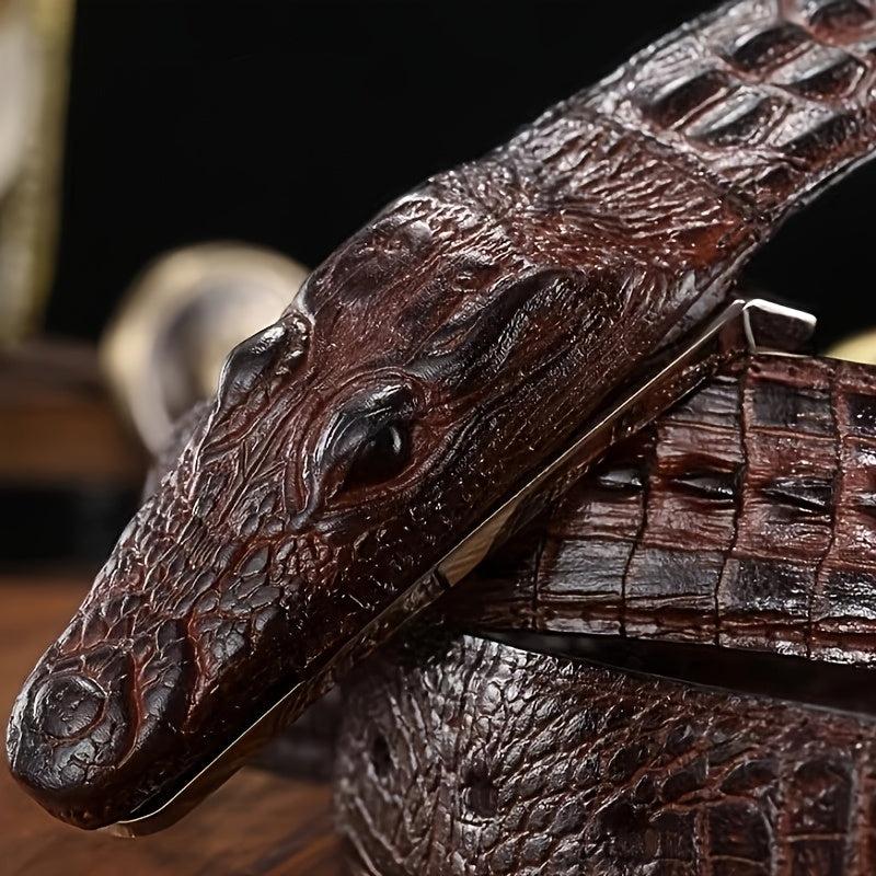Add a touch of style to your social occasions with this fashionable crocodile pattern faux leather belt featuring an alloy animal shaped buckle.