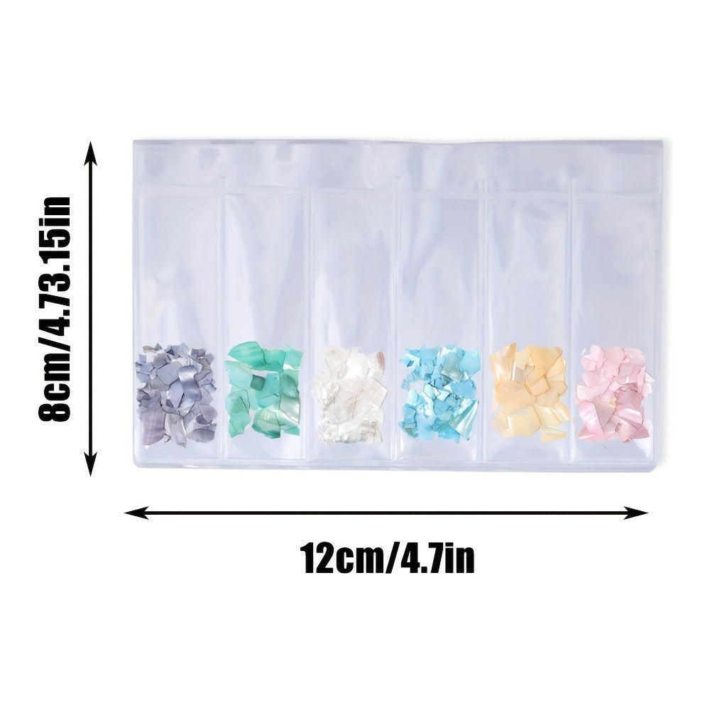 Elevate your nail art with these natural, irregular sea shell flakes. Perfect for creating stunning 3D designs and adding a touch of the ocean to your nails. Ideal for DIY crafts and nail enthusiasts.