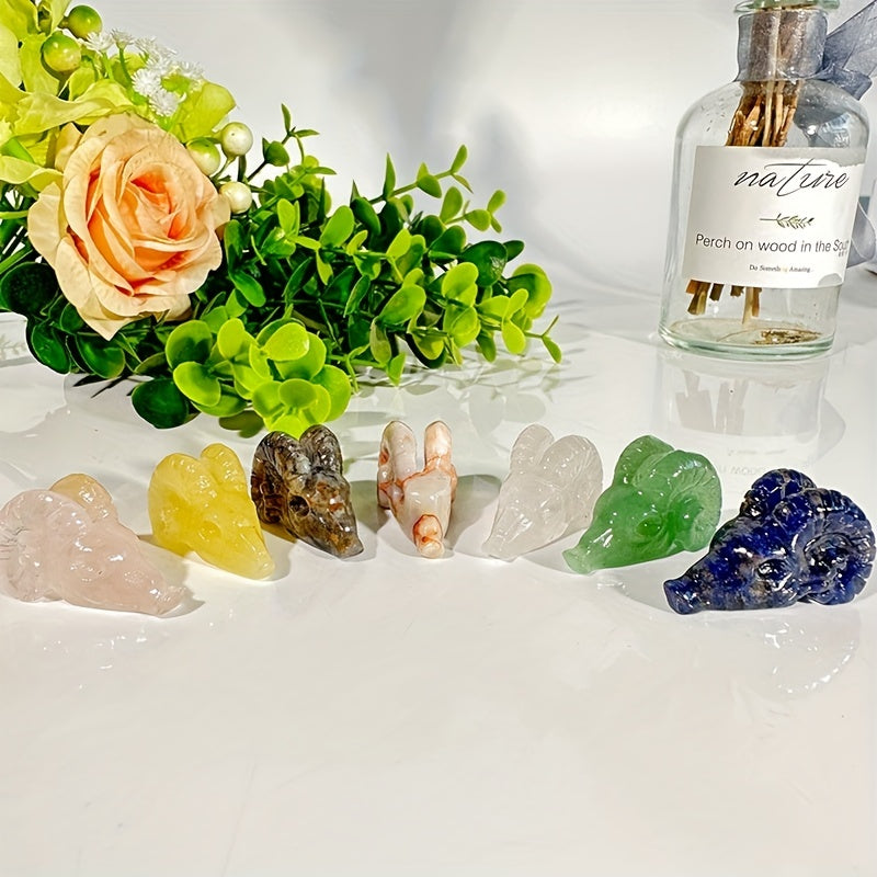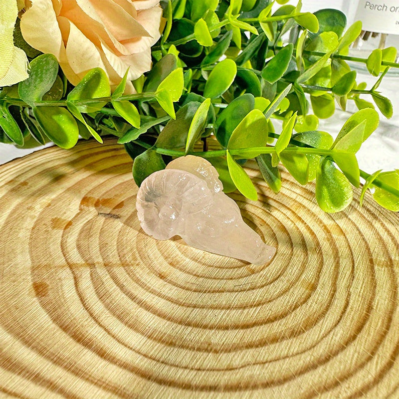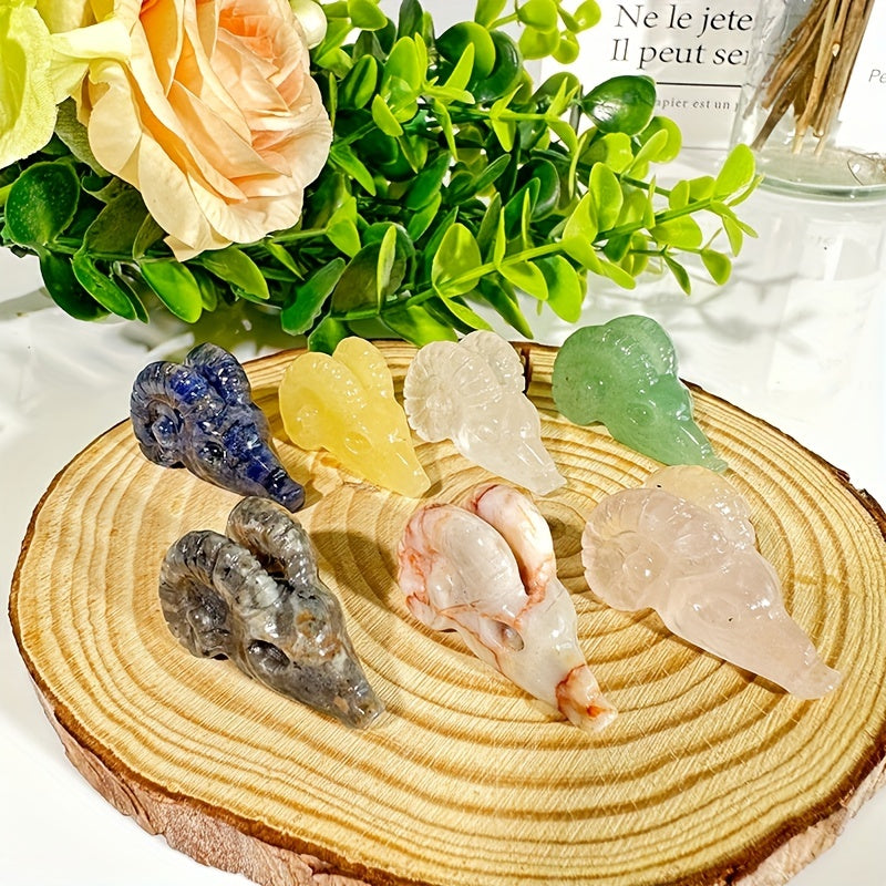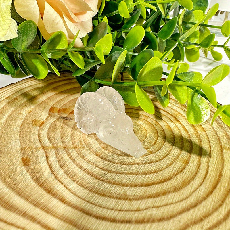 This Crystal Carved Goat Skull Statue is a unique piece for decoration or meditation. It is made of crystal with intricate details. Perfect as a gift for crystal lovers or those interested in healing stones.