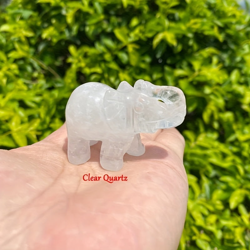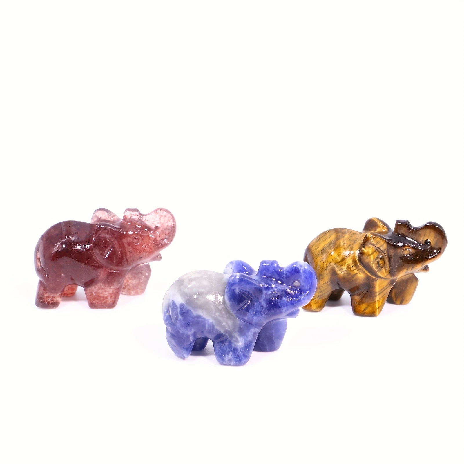 Enhance your space with this exquisite natural crystal elephant statue. Crafted from Tiger's Eye and Green Aventurine, this healing crystal gift is perfect for home decoration.