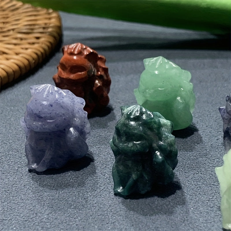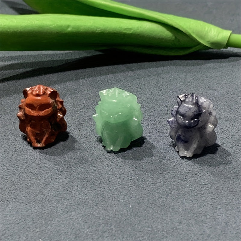 This handcrafted crystal fox with nine tails carving is made from various healing stones. It serves as a beautiful home decor item.