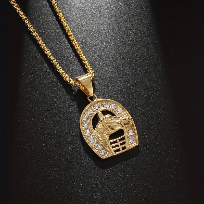This stunning crystal horse head pendant necklace is the perfect accessory for men who love horse racing. It makes a great gift for any horse rider or racing enthusiast.