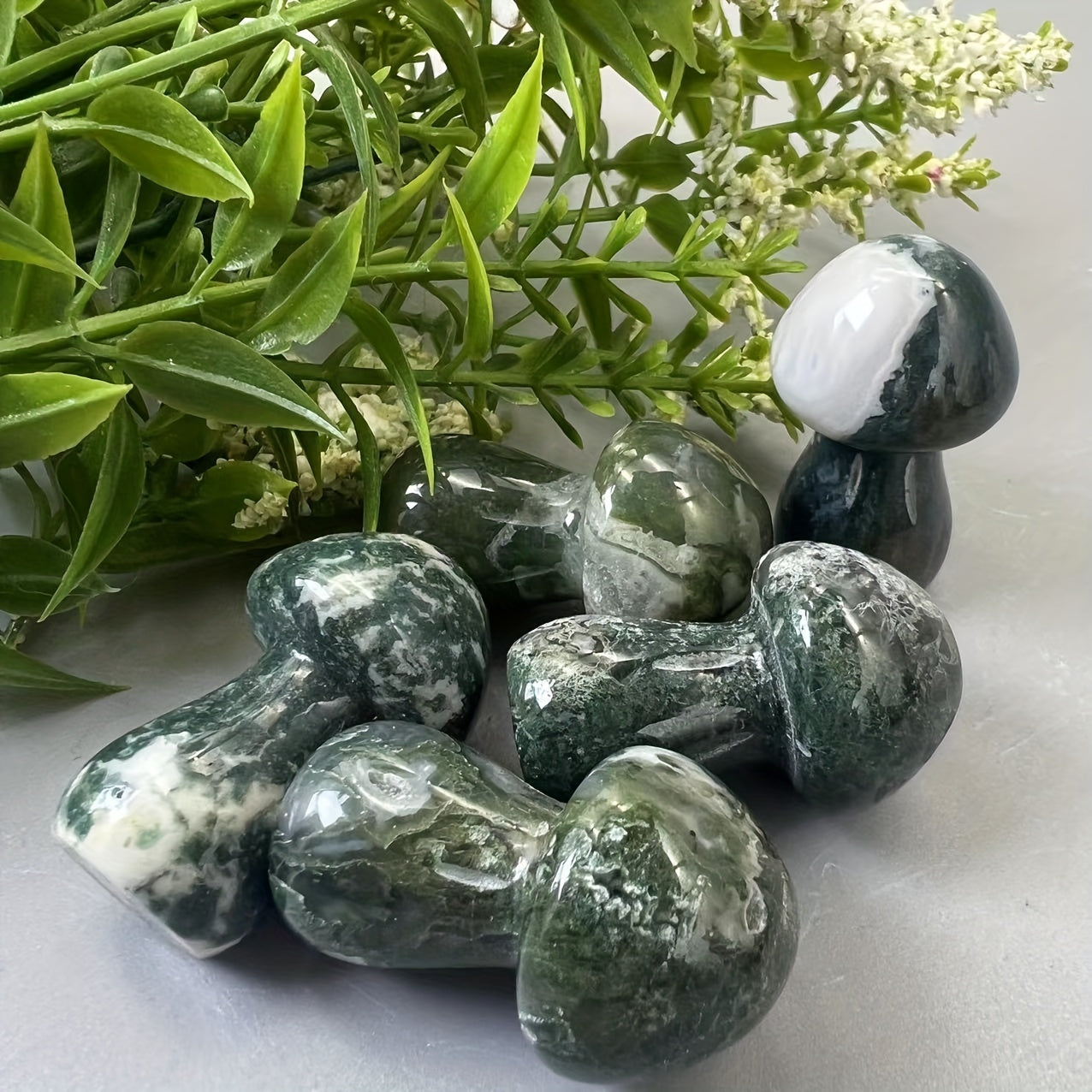 Add a touch of whimsy to your surroundings with this crystal mini mushroom statue. Perfect for adorning your car or home.