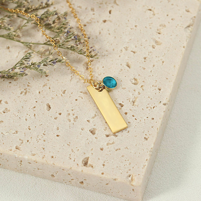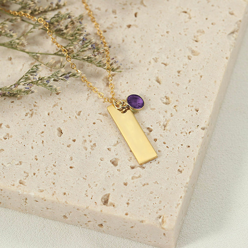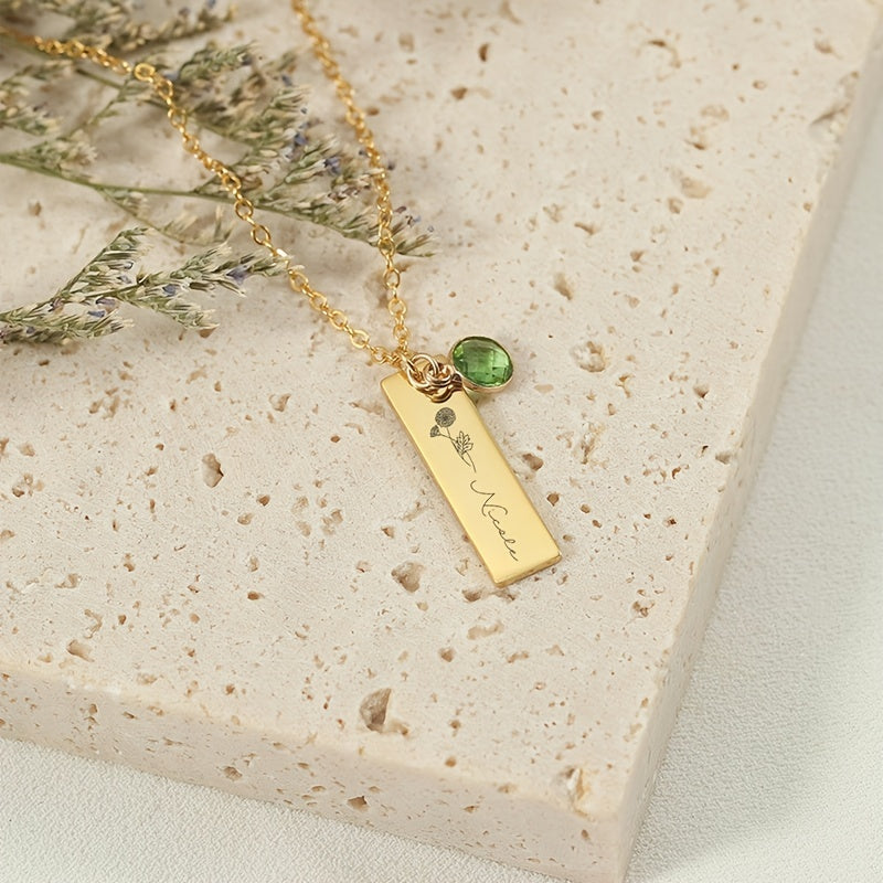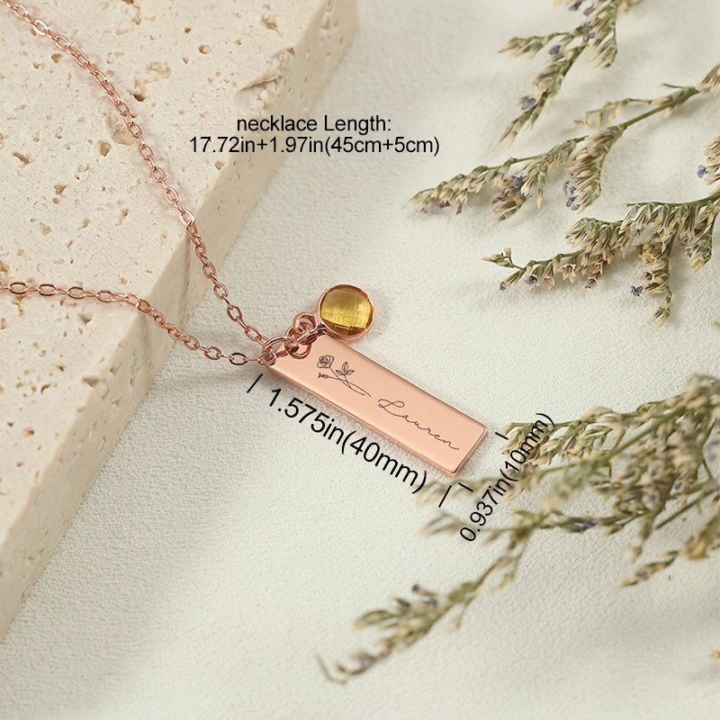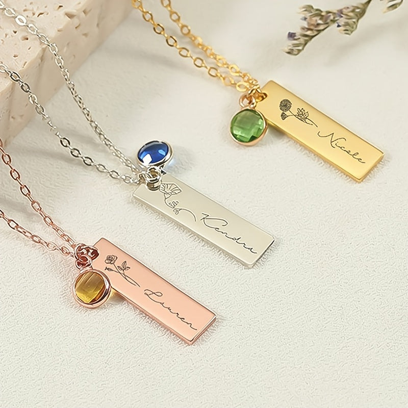 Celebrate special occasions with this personalized stainless steel necklace featuring twelve birthstones. Ideal for birthdays, Valentine's Day, and graduations, this necklace can be engraved with a name for a unique touch.