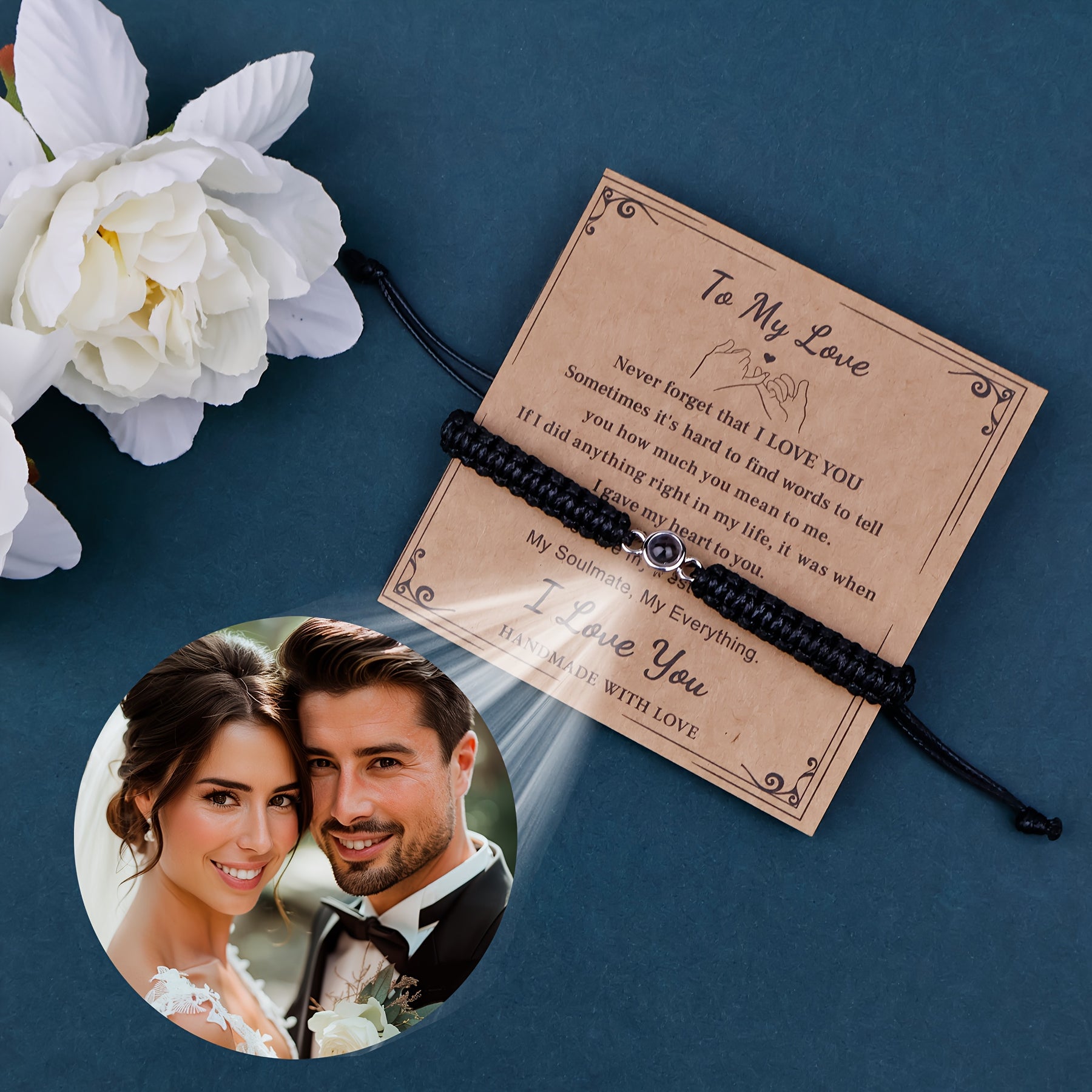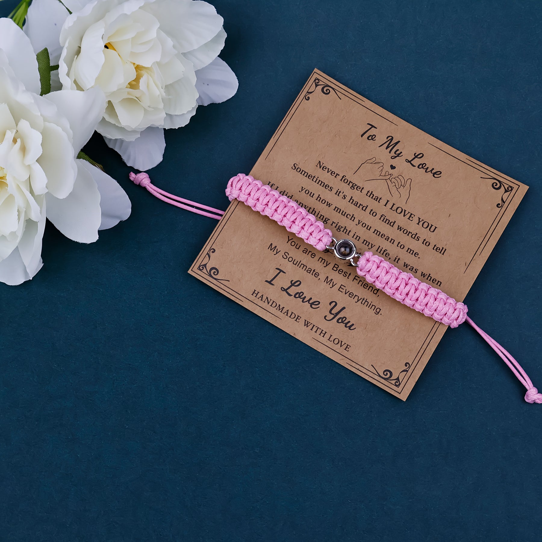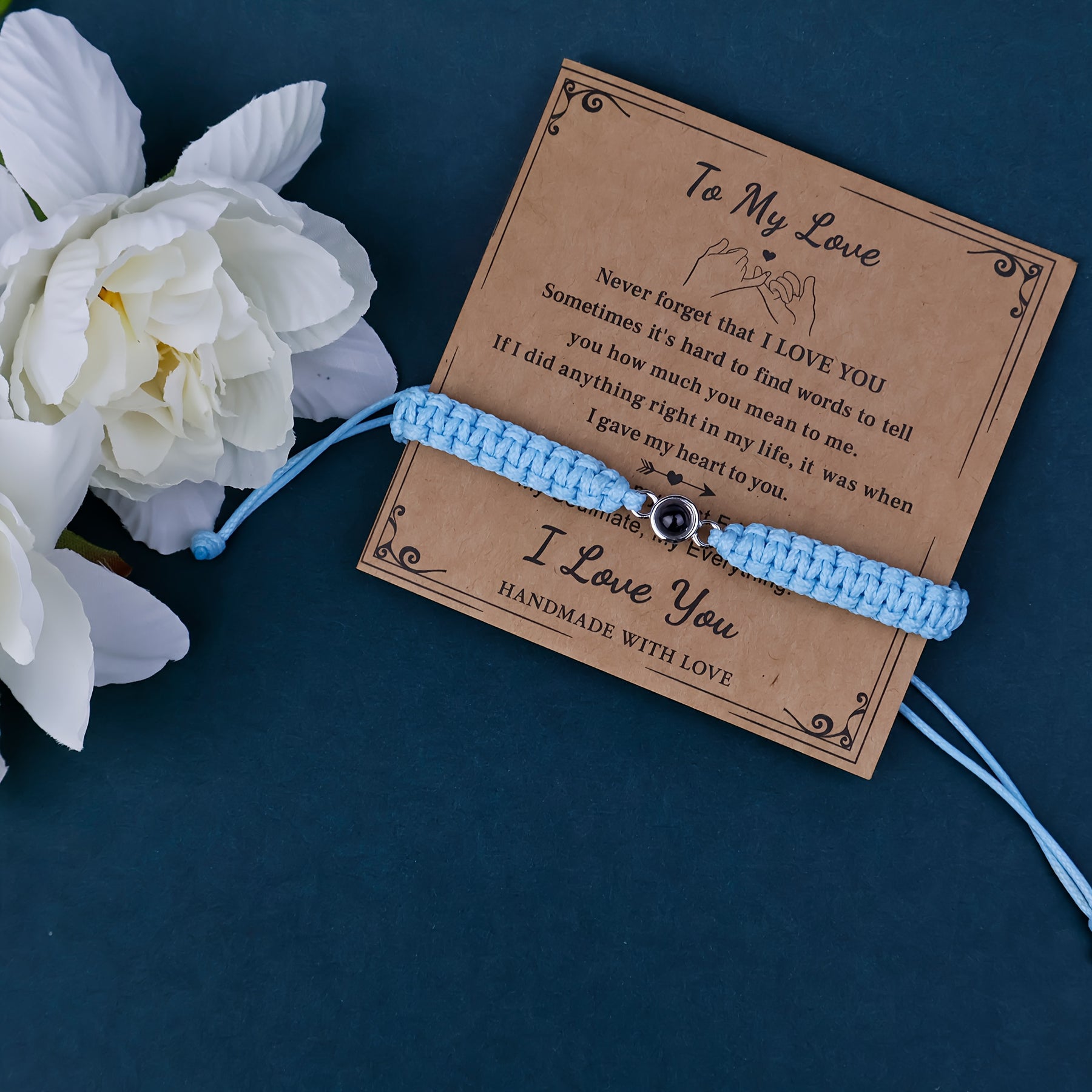 Custom Photo Projection Braided Bracelet with Greeting Card