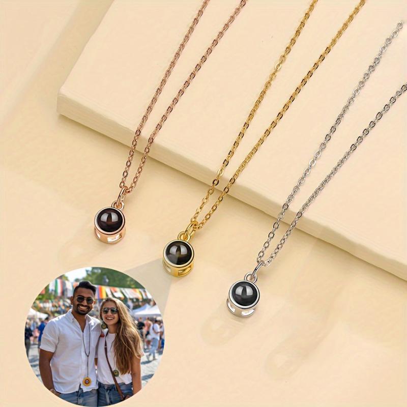 Unique and personalized necklace with photo projection feature. Ideal gift for birthdays, Mother's Day, and special occasions. Classic style design.