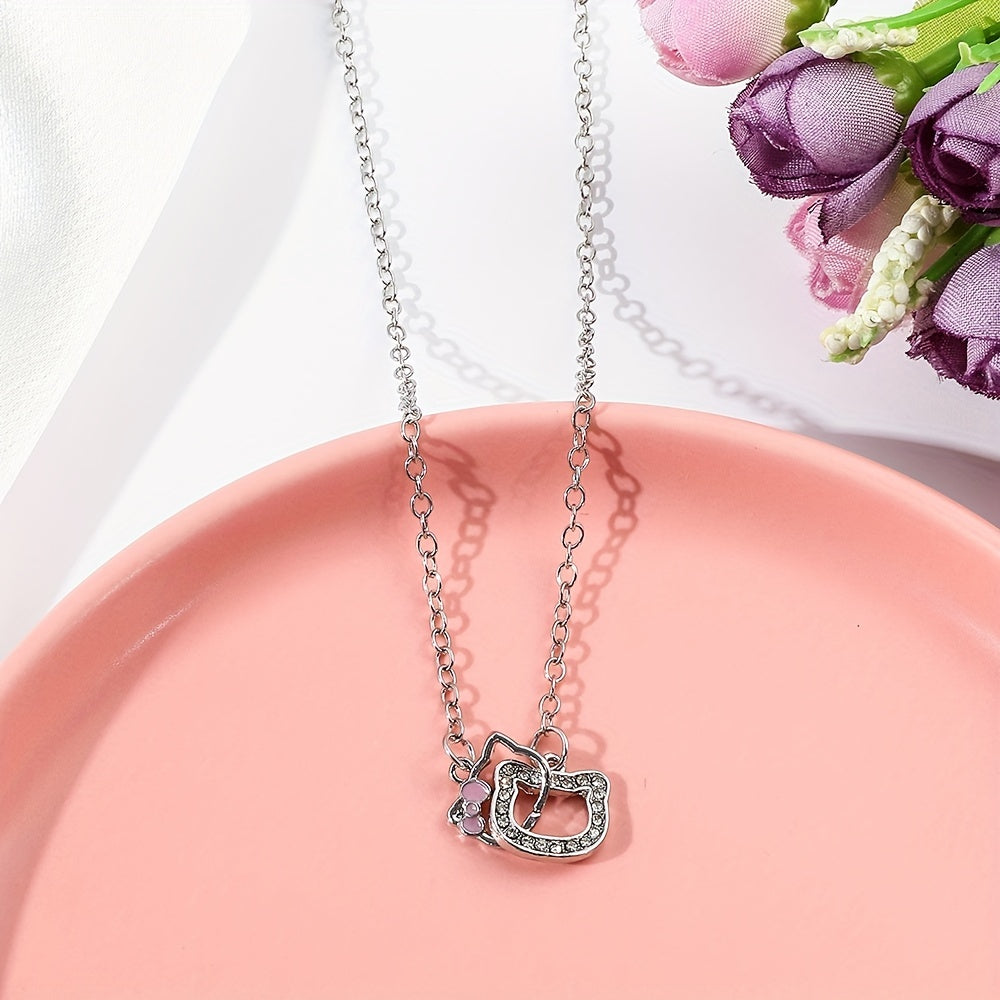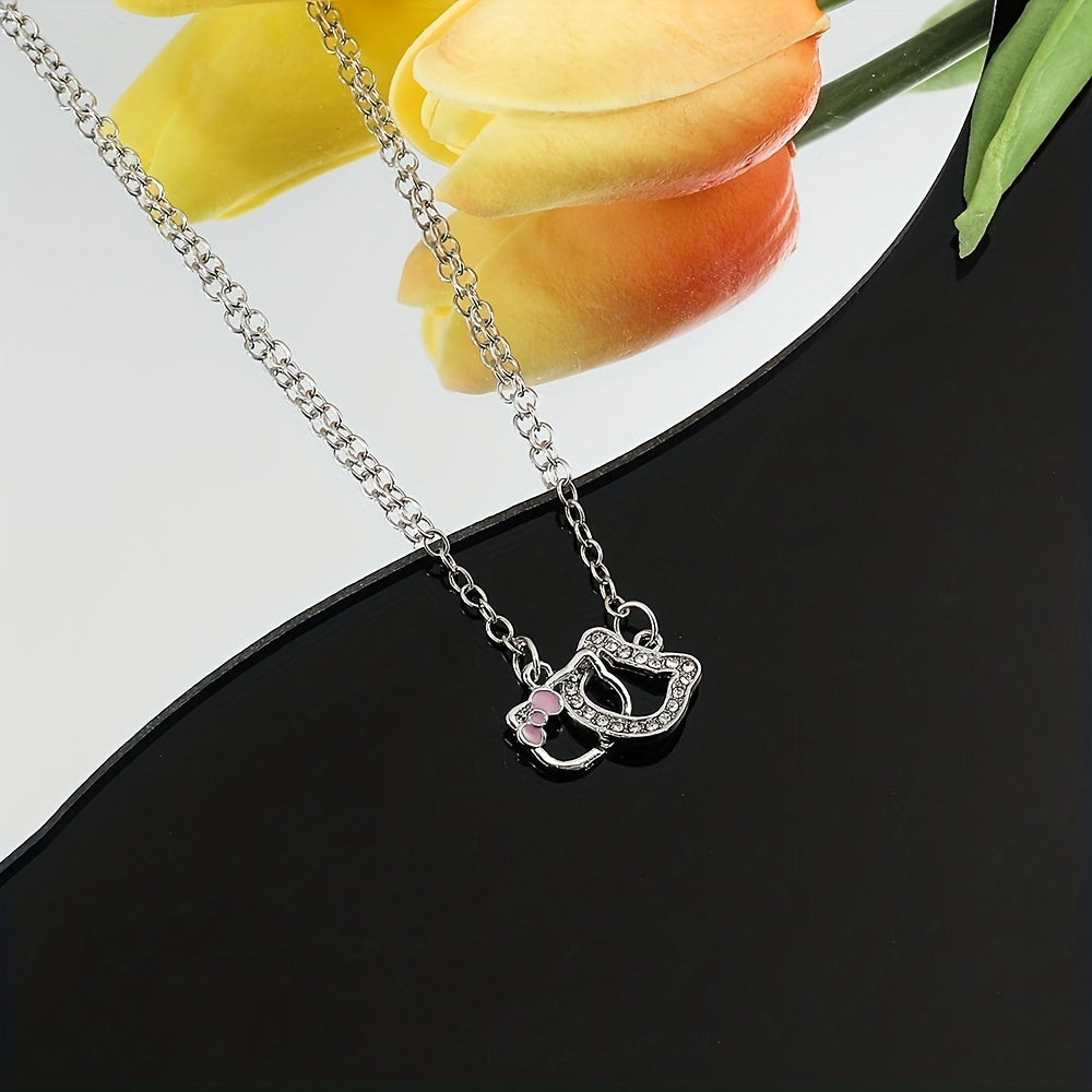 Adorn yourself with this adorable cat cartoon necklace featuring rhinestone inlaid diamond, perfect for men.