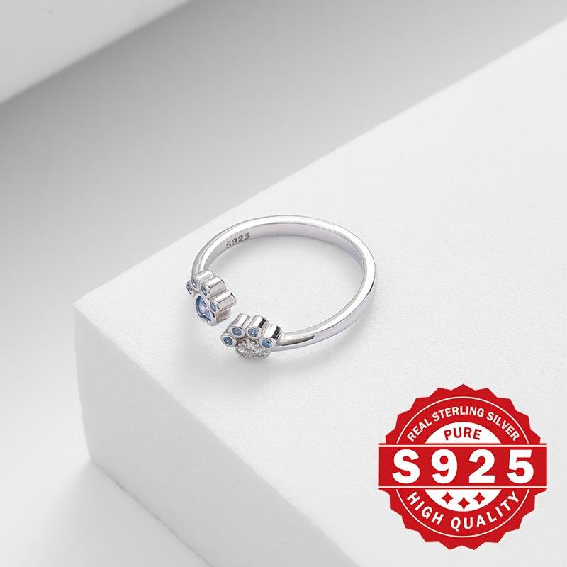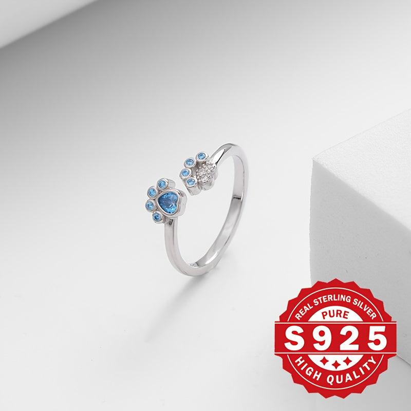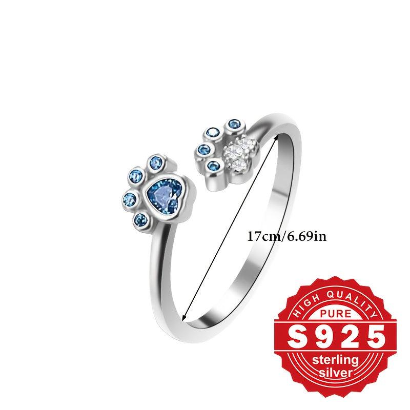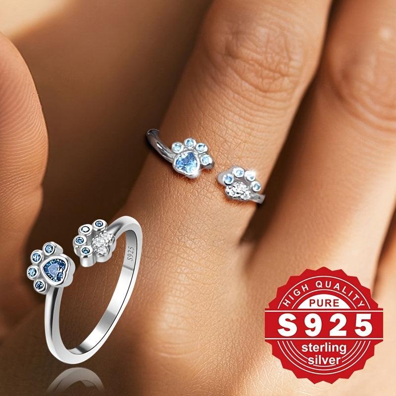 Sparkling cubic zirconia cat paw ring made of S925 pure silver with plating. Perfect accessory for cat lovers for daily wear and as a Valentine's gift.