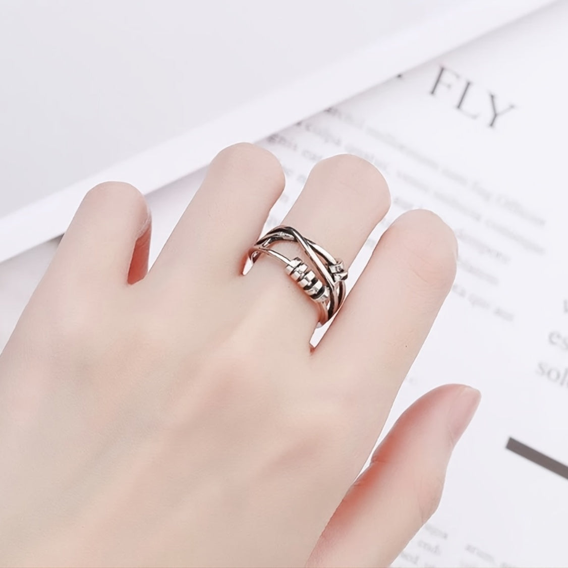 This dainty anxiety ring is designed to help alleviate stress and anxiety. It features a bead that can be rotated for a calming effect. An adjustable ring that provides relief and can be worn discreetly.