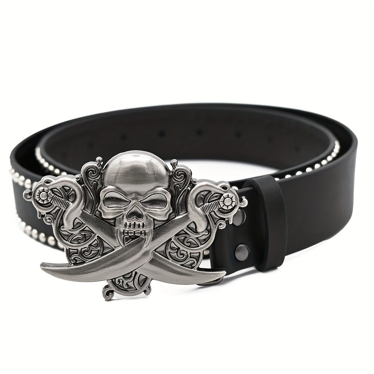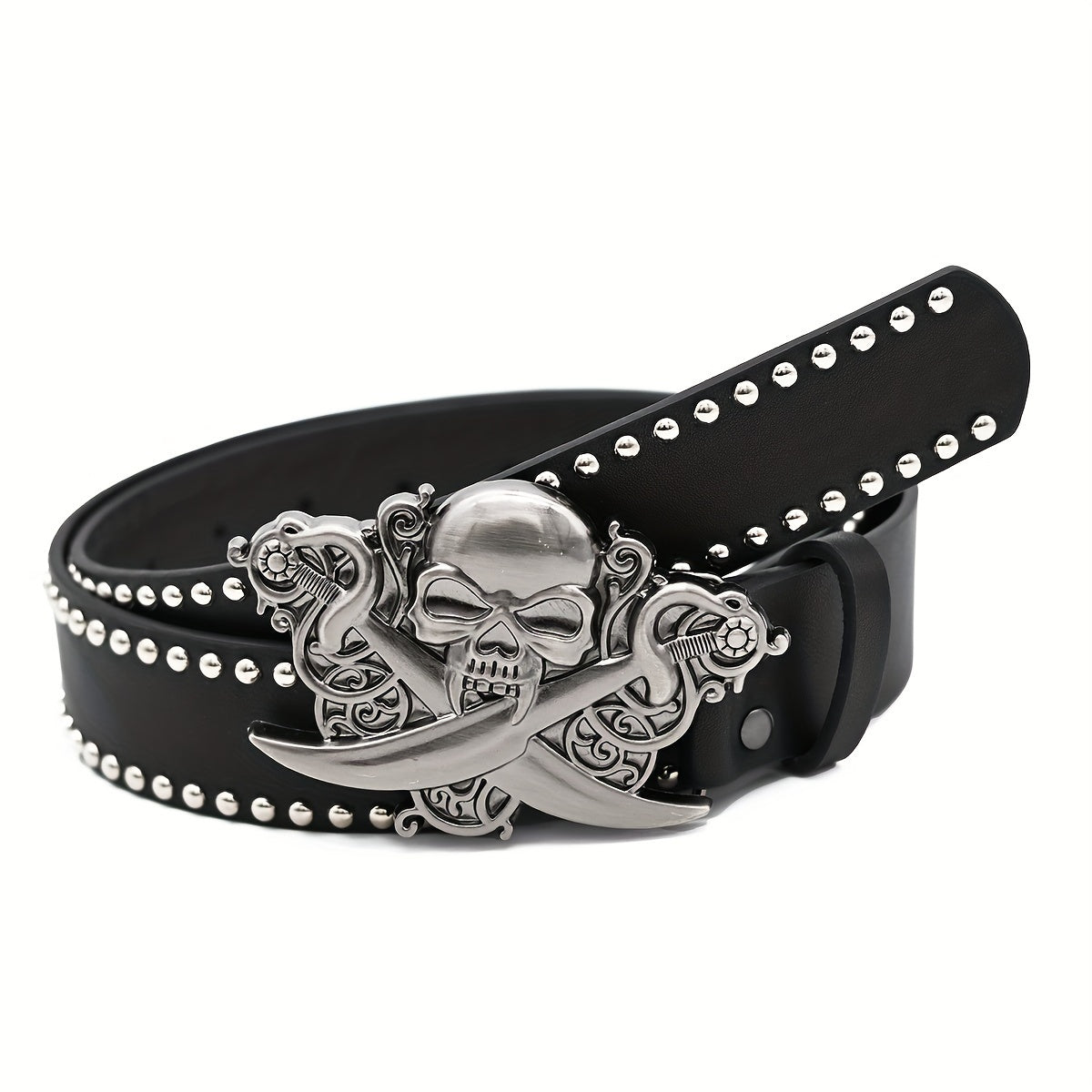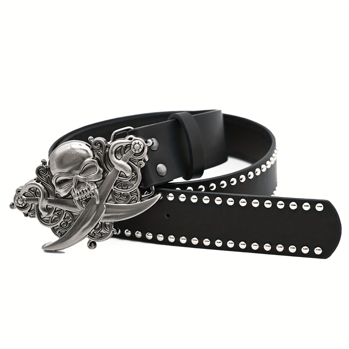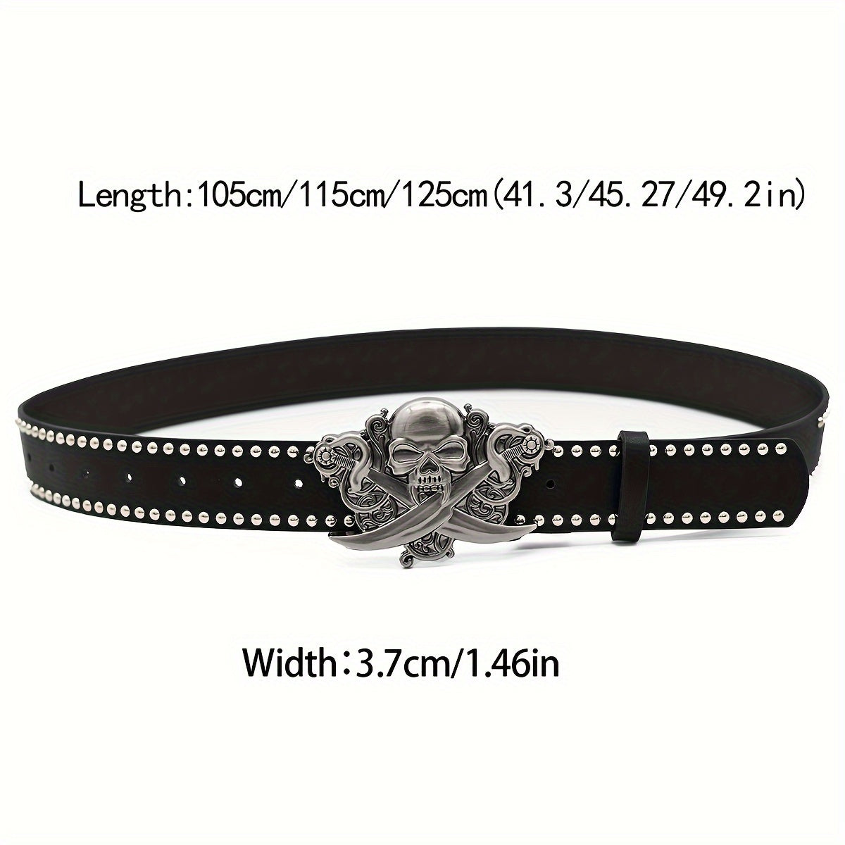 This versatile belt features a dark punk design with snap fastenings and a skull buckle head. Suitable for both women and men, this street style rivet belt is perfect for young students.