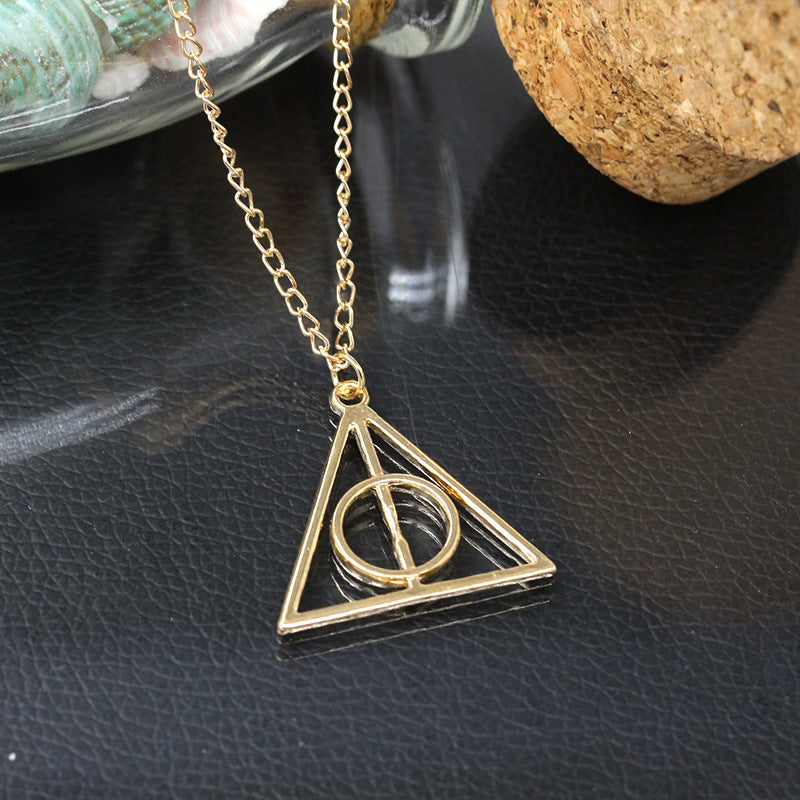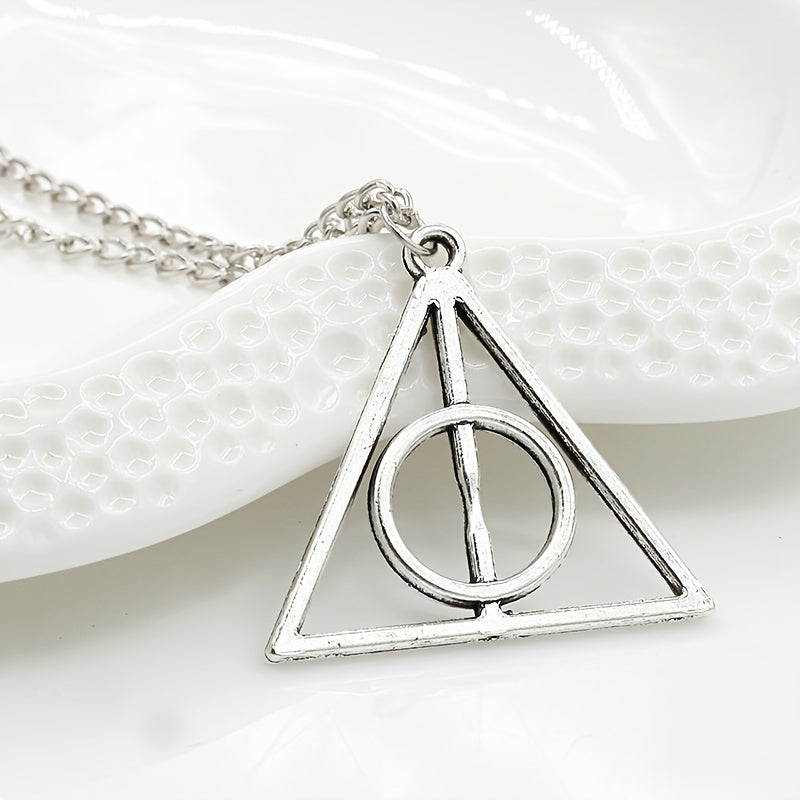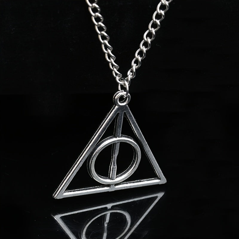 Show your love for Harry Potter with this unisex necklace featuring the Deathly Hallows symbol. The intricate design of the triangle round pattern adds a touch of magic to your style.