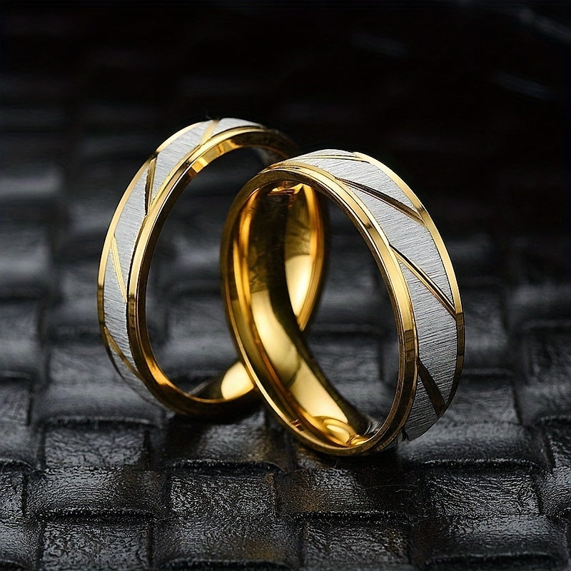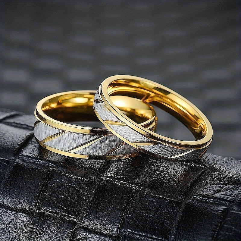 This beautiful couple ring features a diagonal batch flower design. Perfect for expressing love and commitment.