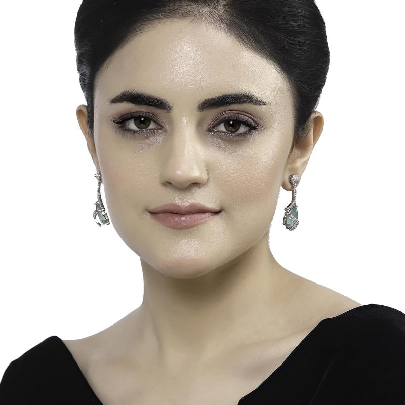 Elegant rhodium-plated earrings adorned with sparkling diamonds, perfect for adding glamour to any outfit.