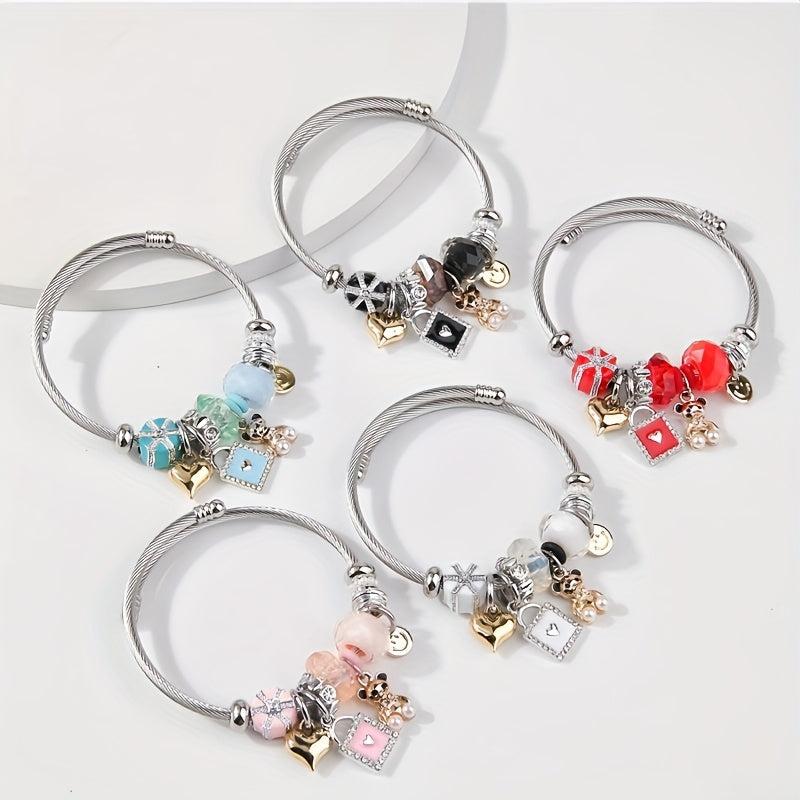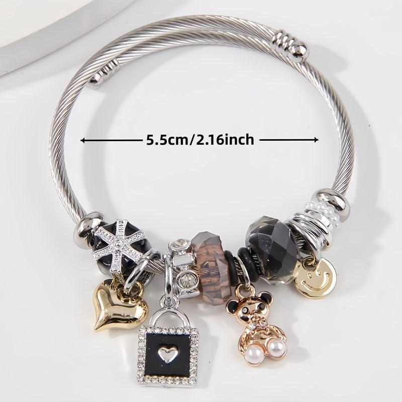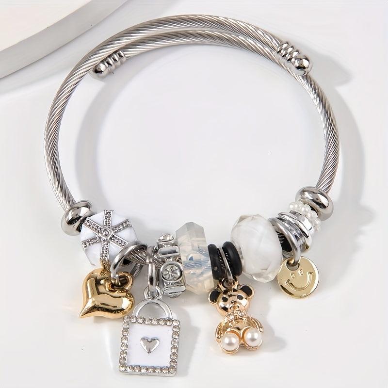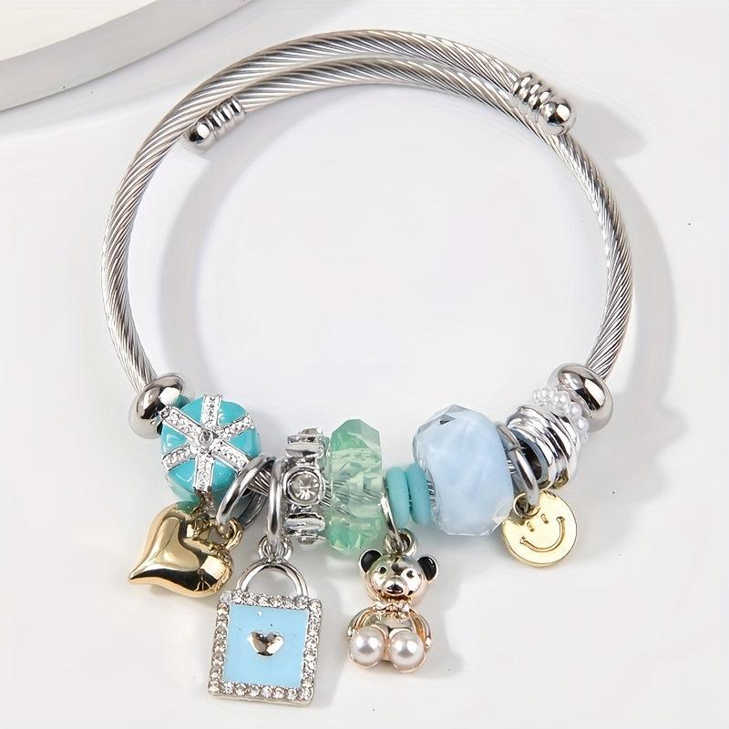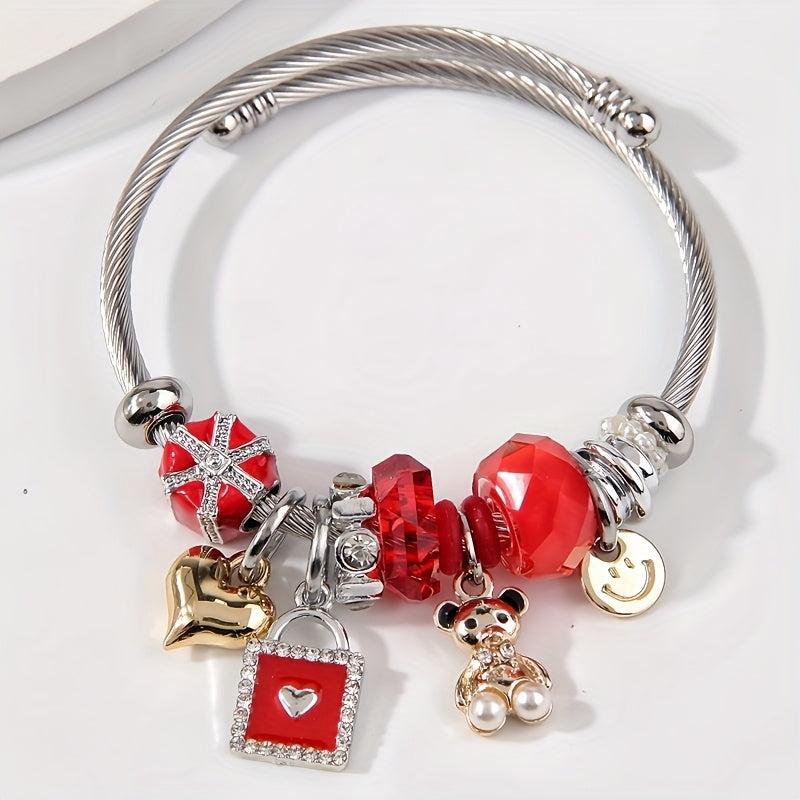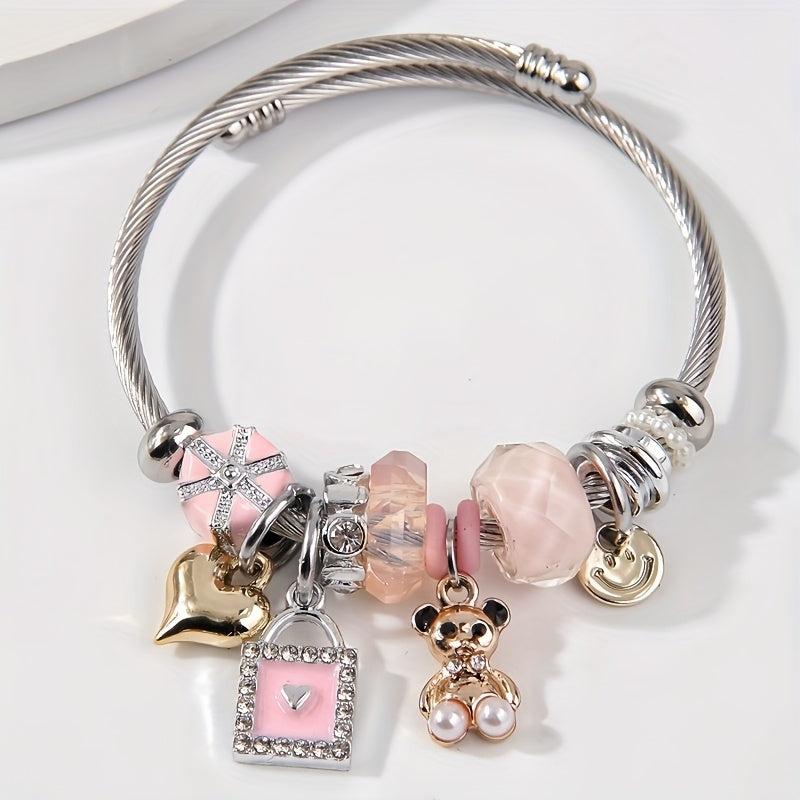 Create your own style with this European and American DIY beaded bracelet featuring a love bear design. The bracelet is open and adjustable for a comfortable fit.