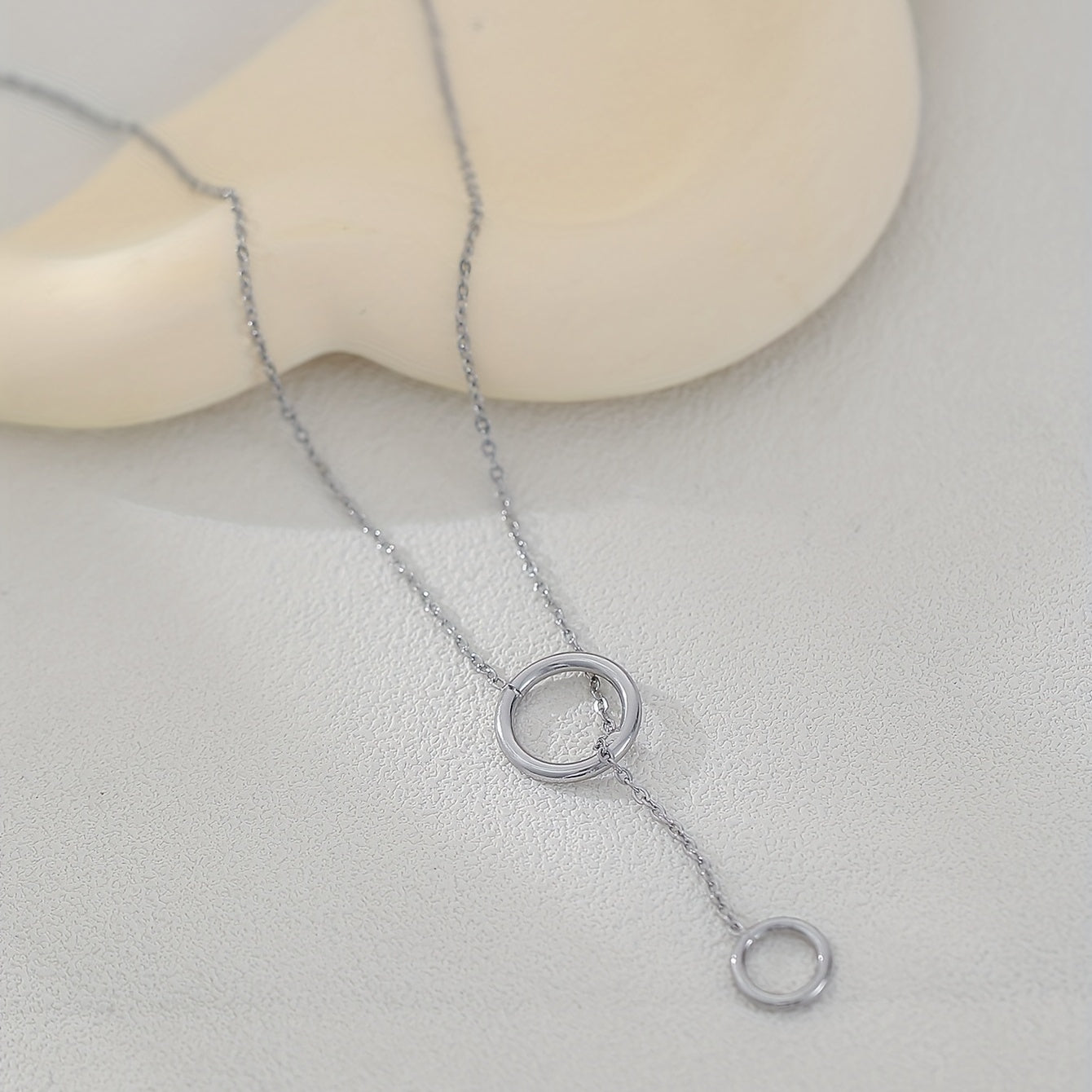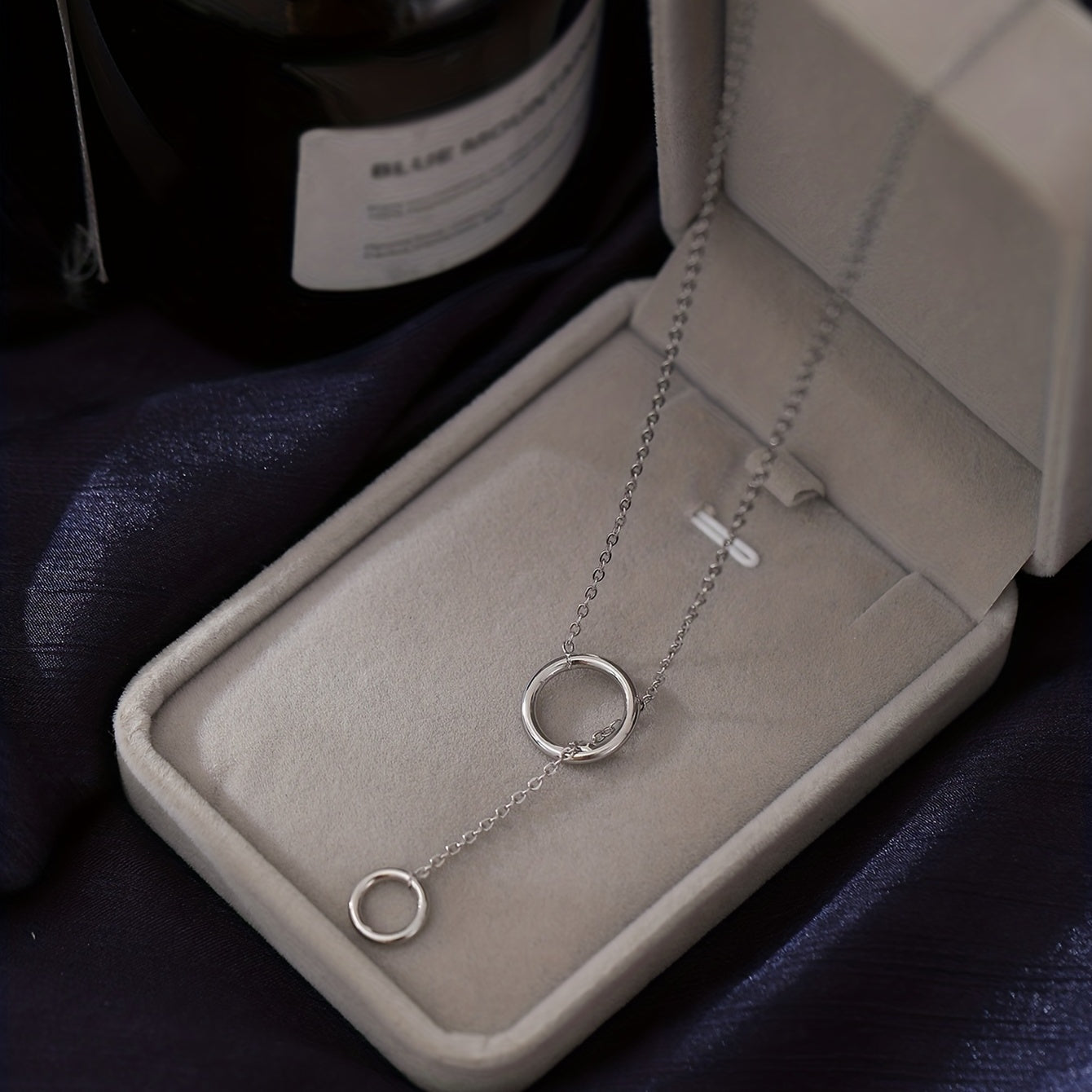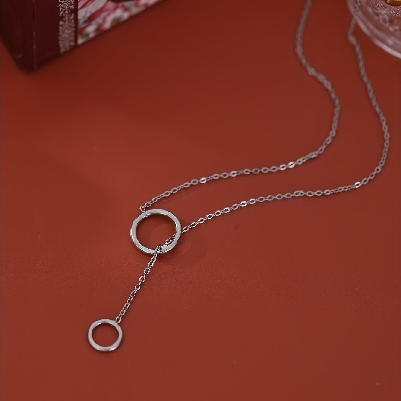 This elegant double circle pendant necklace is a perfect accessory for women. It features a hollow circle design that adds a touch of sophistication to any outfit. A great gift idea for special occasions.