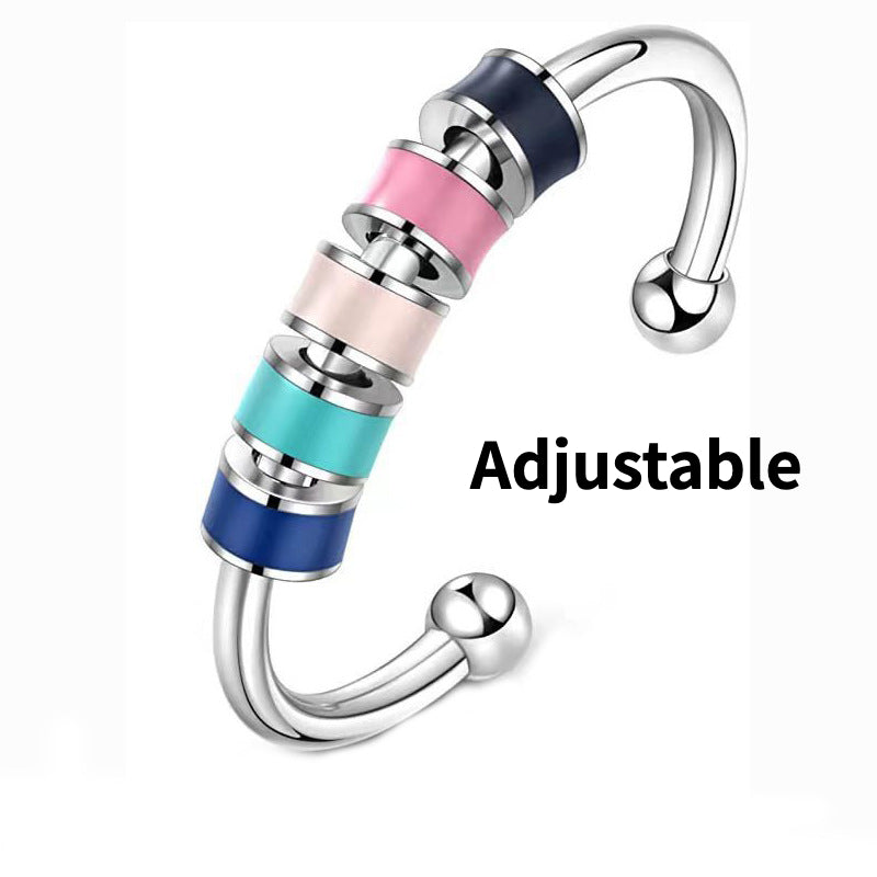 This delicate enamel spinner ring is designed to help release stress and anxiety. It features a worry bead ring that is perfect for calming moments. Ideal gift for birthdays.
