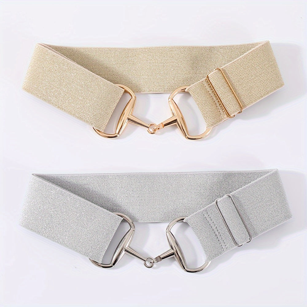 Upgrade your equestrian style with this adjustable elastic band belt featuring a horse shoe buckle. Perfect for sports or everyday wear.