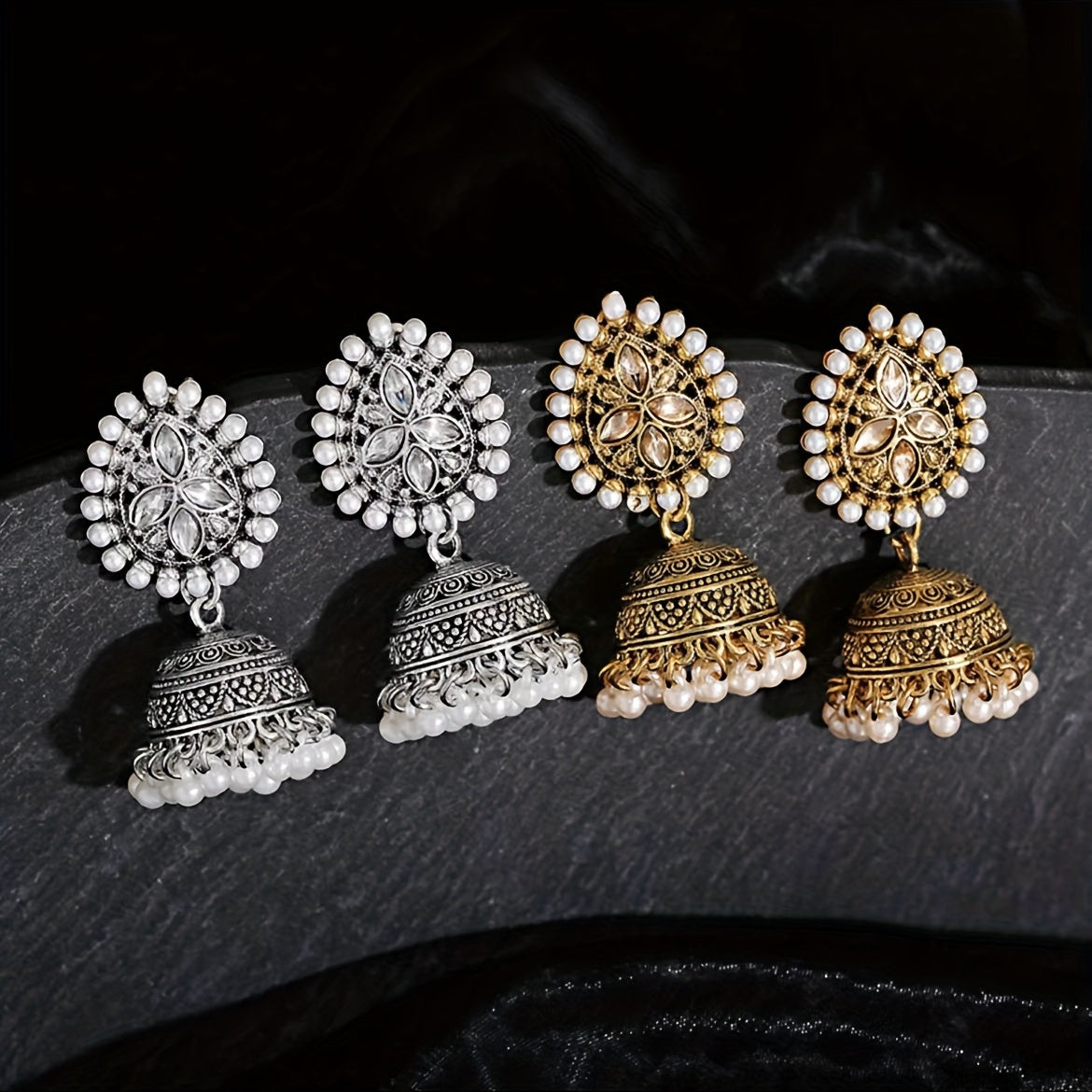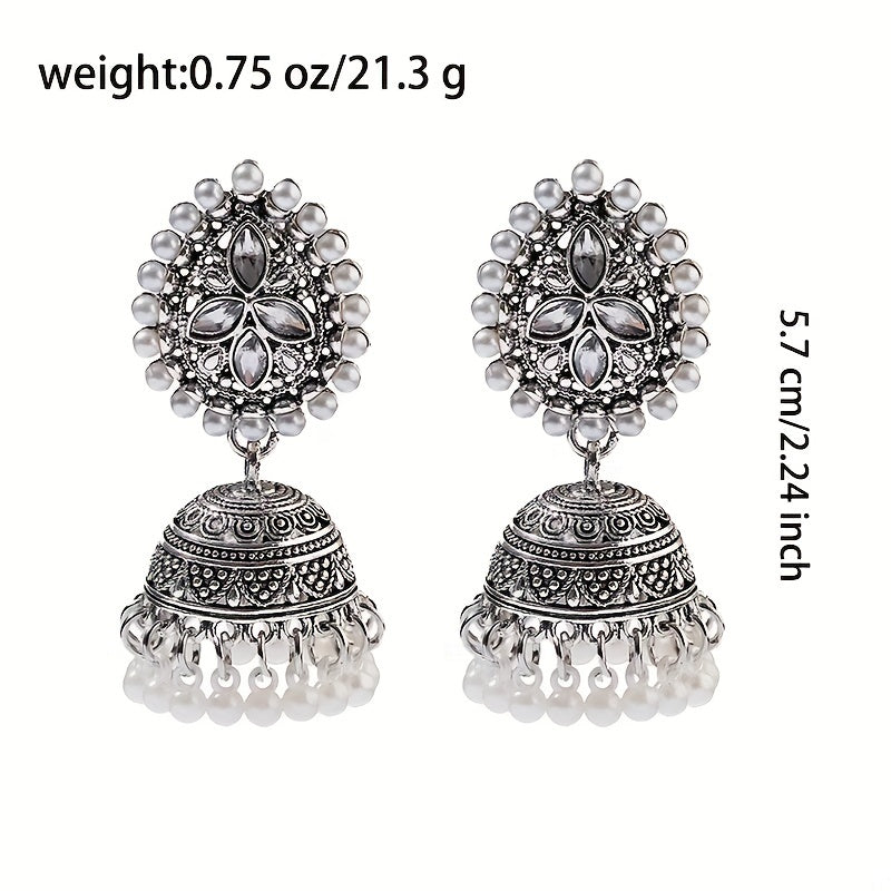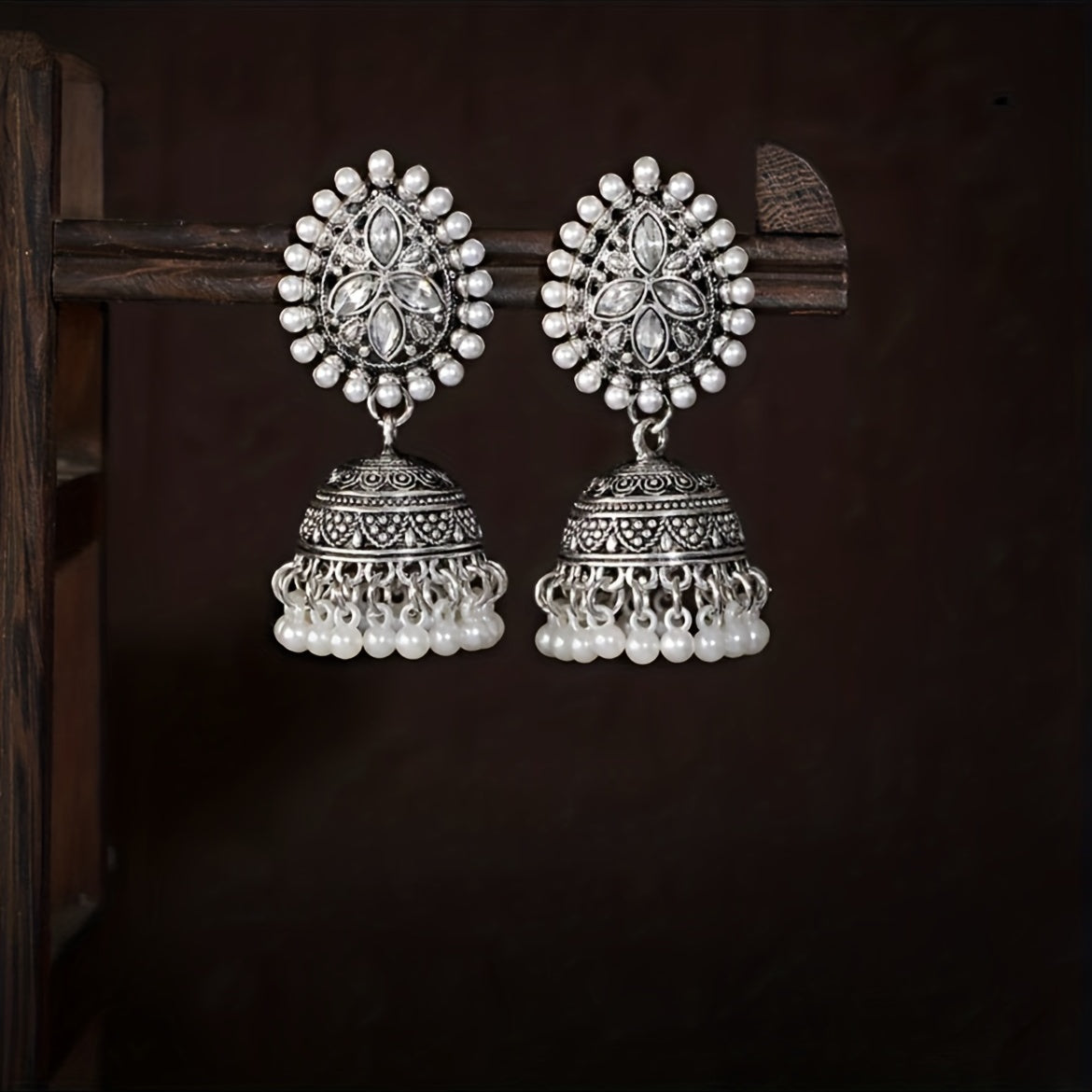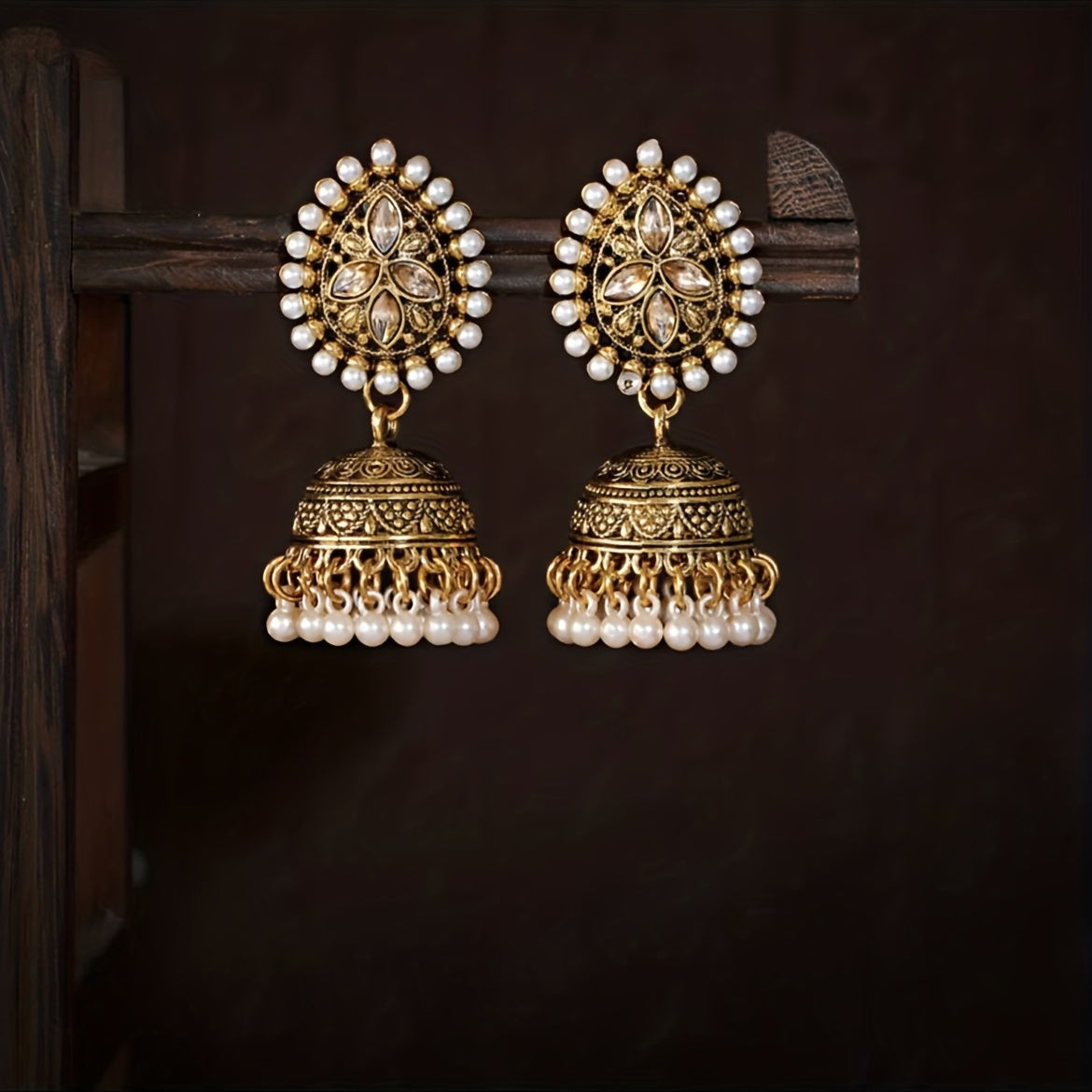 Add a touch of Bohemian style to your look with these retro ethnic bell pendant earrings. Featuring faux pearls and sparkling zircon decoration, they are a perfect accessory for any outfit.