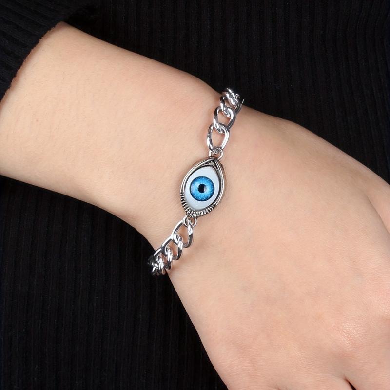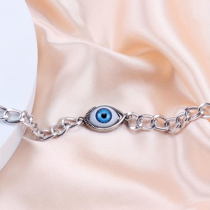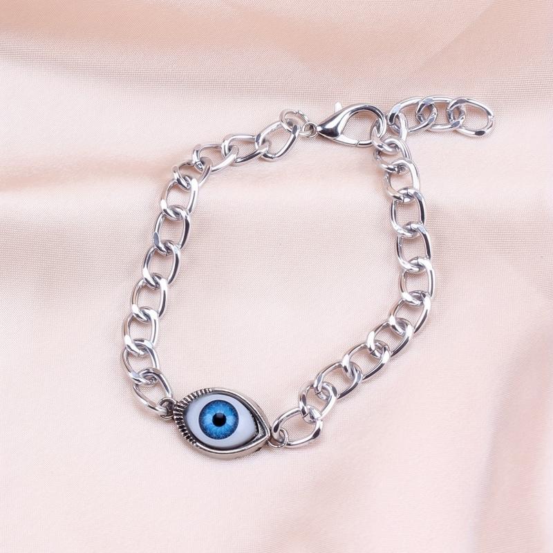 Stay protected and add a touch of style with this eye chain bracelet. Perfect for everyday wear or special occasions.