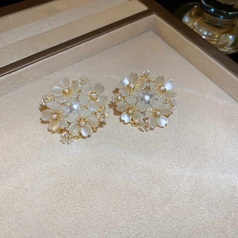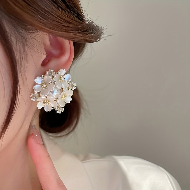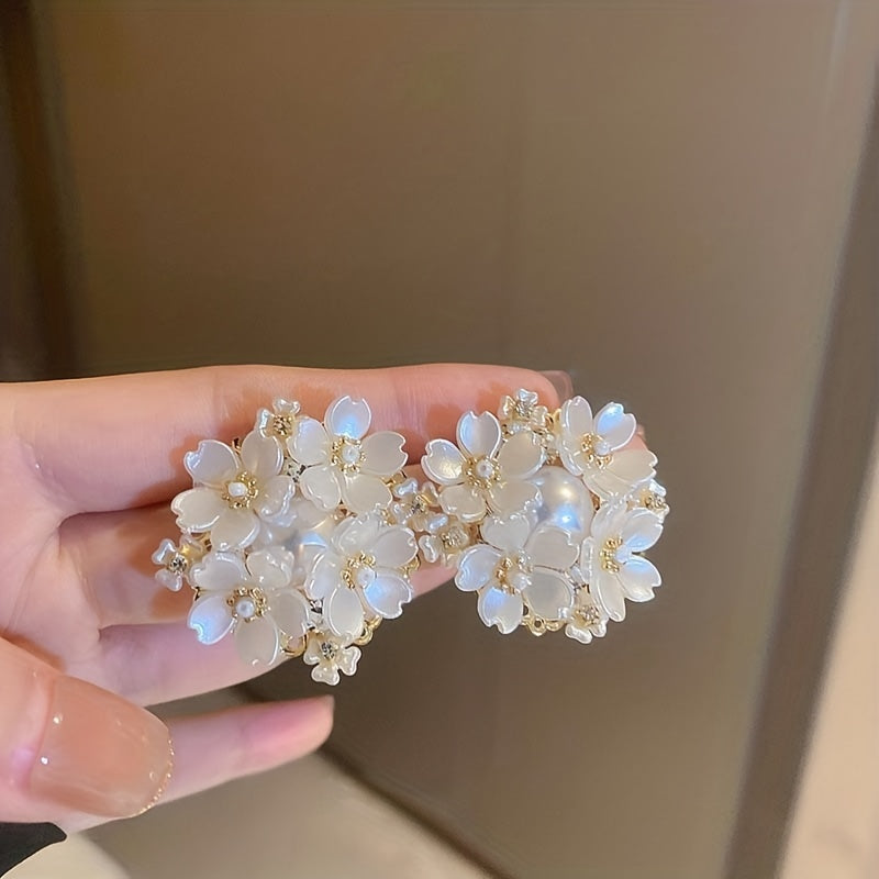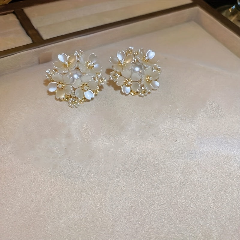 Lightweight and elegant earrings featuring faux diamond flower decor, perfect for women and girls as a gift.