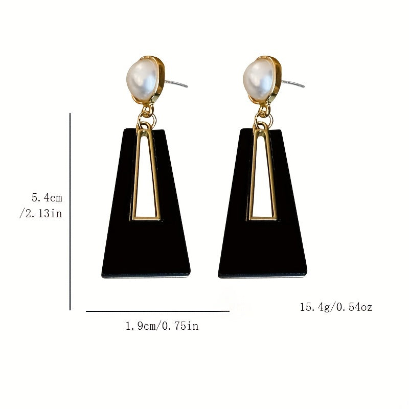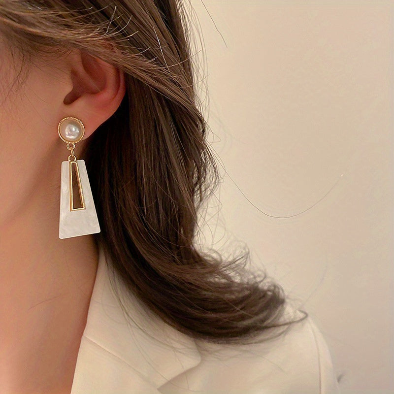 Elevate your style with these stunning faux pearl acrylic geometric earrings.