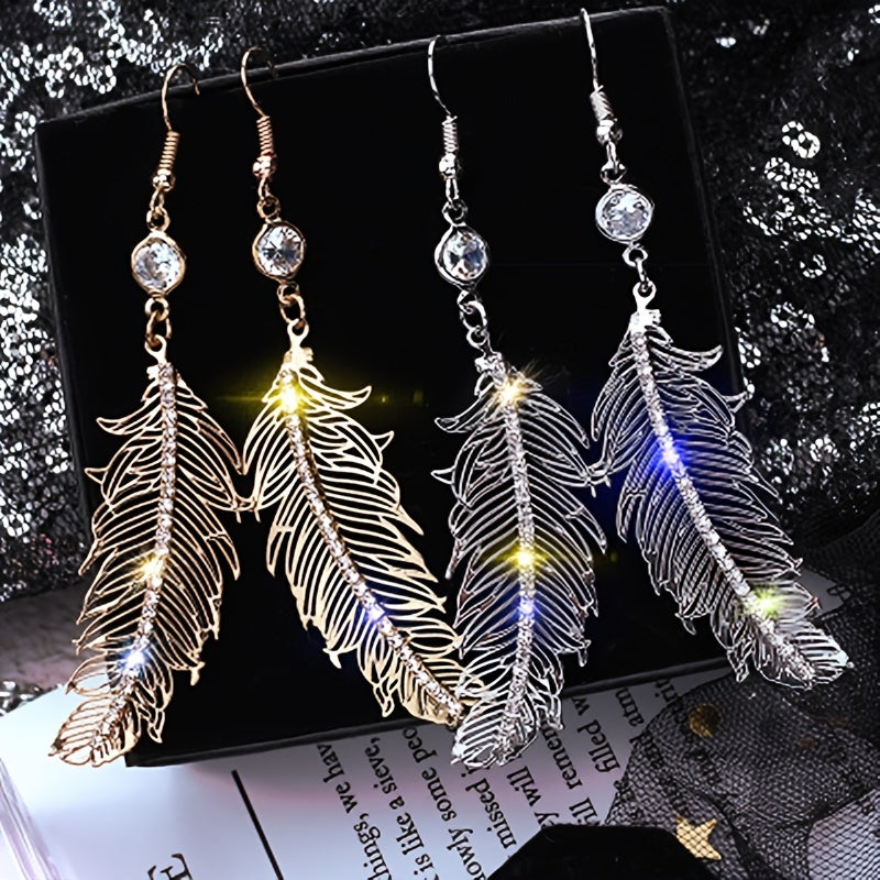 These elegant long feather earrings feature sparkling crystals, making them perfect for weddings, engagements, or as a gift for someone special.