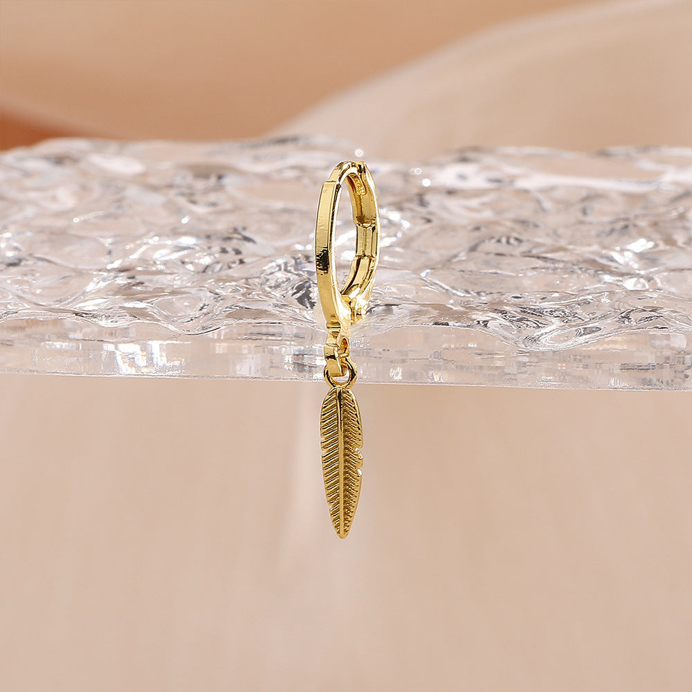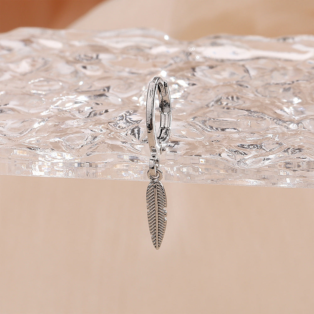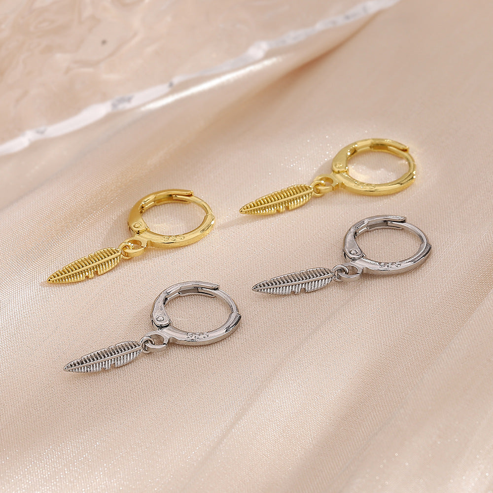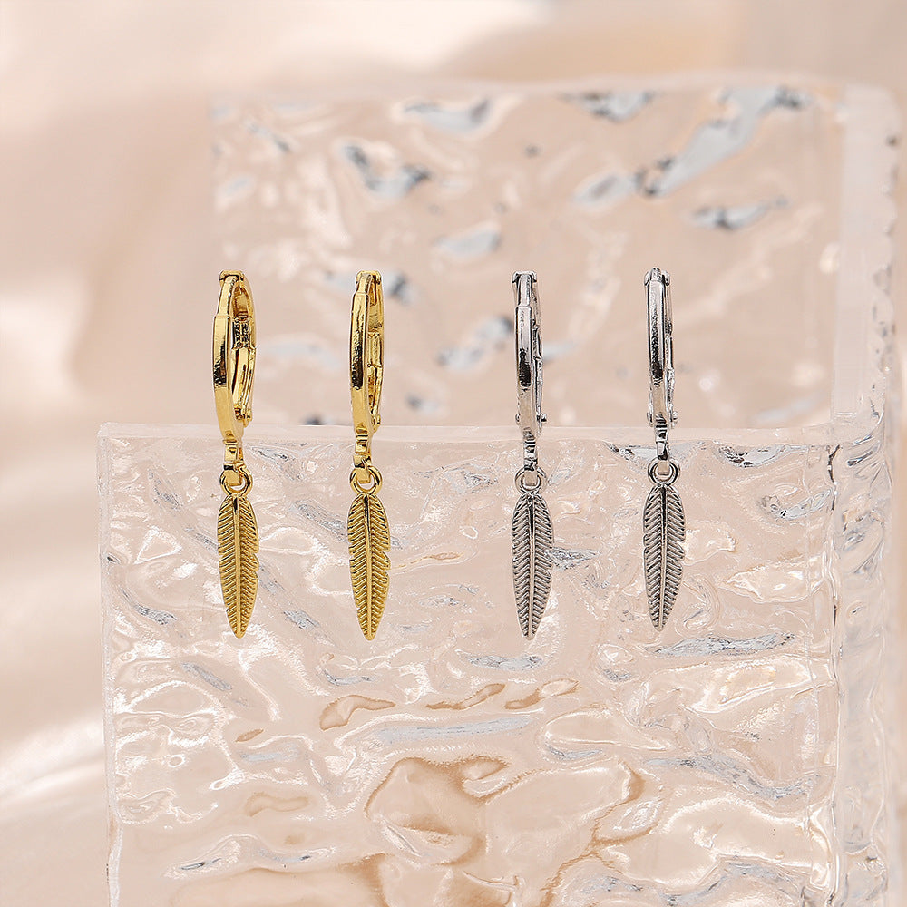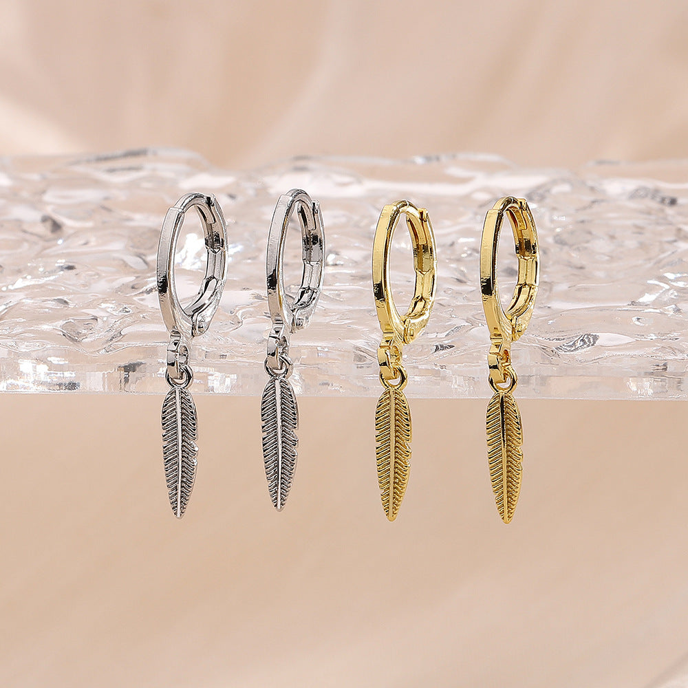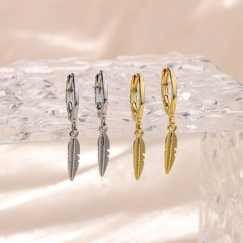 Unique feather and copper leaf earrings suitable for men or couples. These earrings make a stylish statement and add a touch of nature-inspired charm to your look.