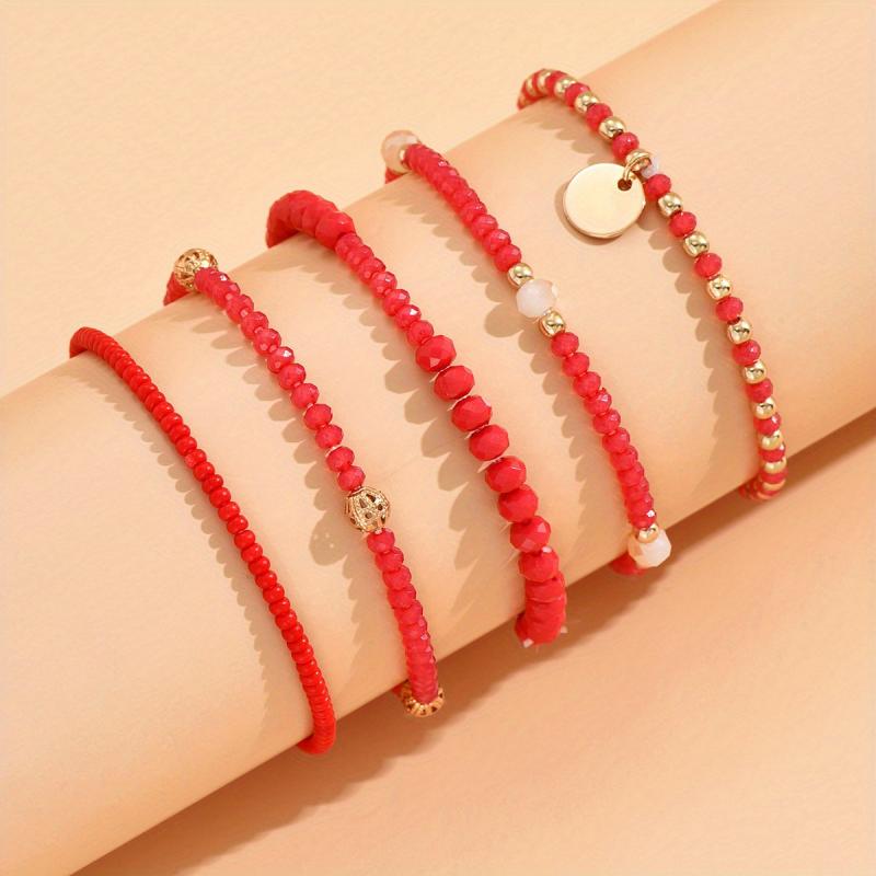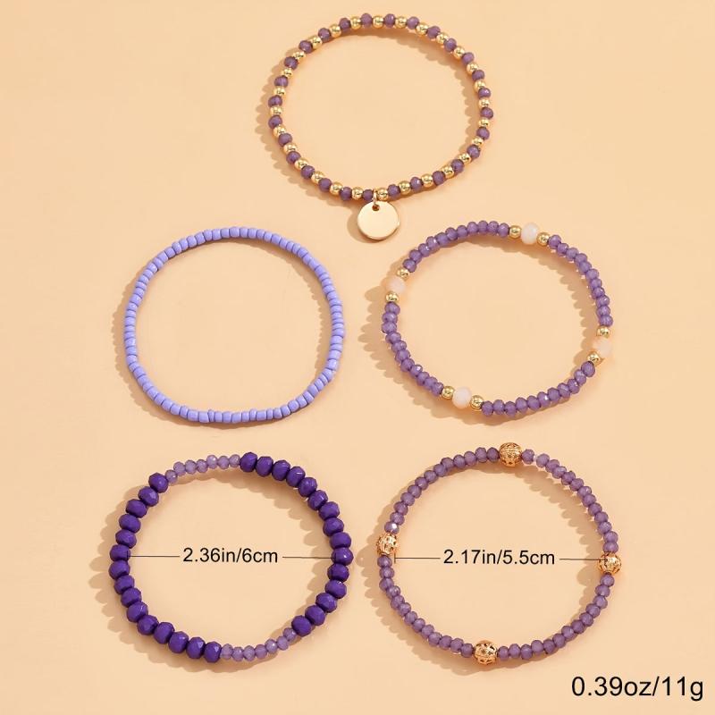 Elevate your style with this set of stackable stretch bracelets featuring a flat round shape pendant. Perfect for everyday wear or special occasions.