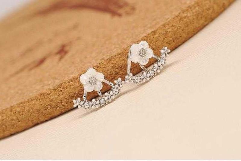 These elegant earrings feature a delicate floral design with zircon accents, perfect for brides or special occasions. The tiny daisy flower ear jacket adds a unique touch to any outfit.