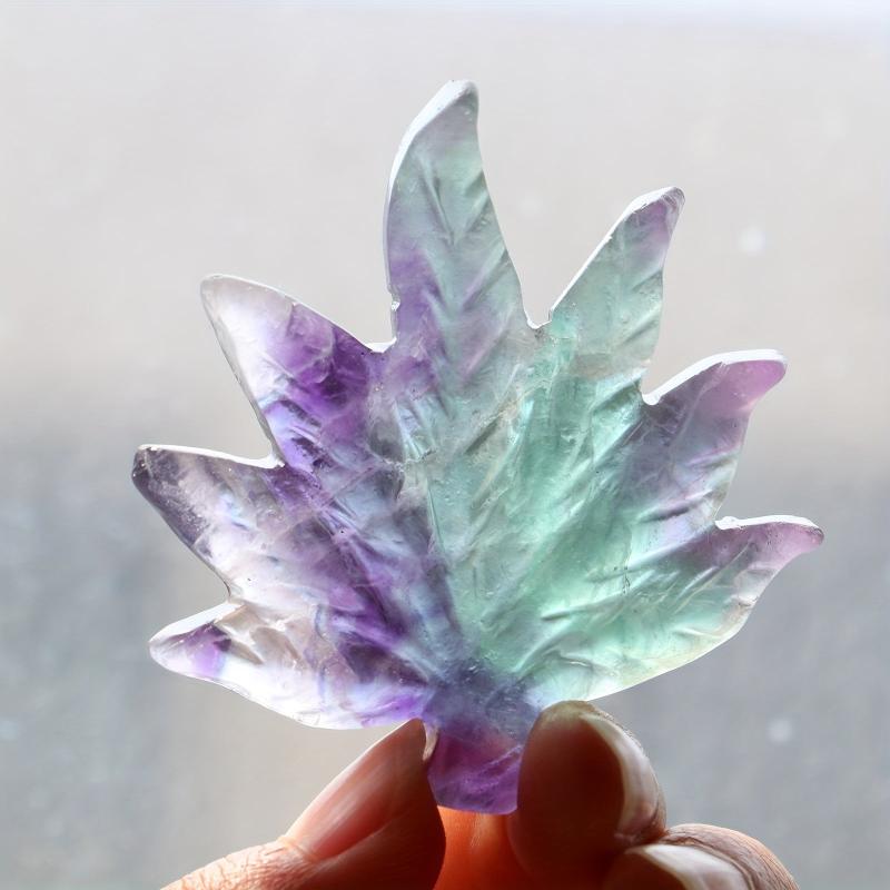 This stunning Fluorite Maple Leaf Crystal Statue is perfect for Reiki healing, decor, or jewelry. It brings positive energy and charm to any room.