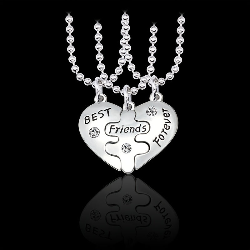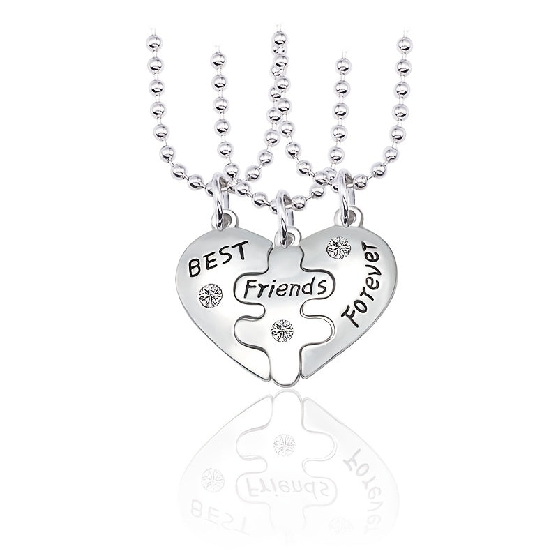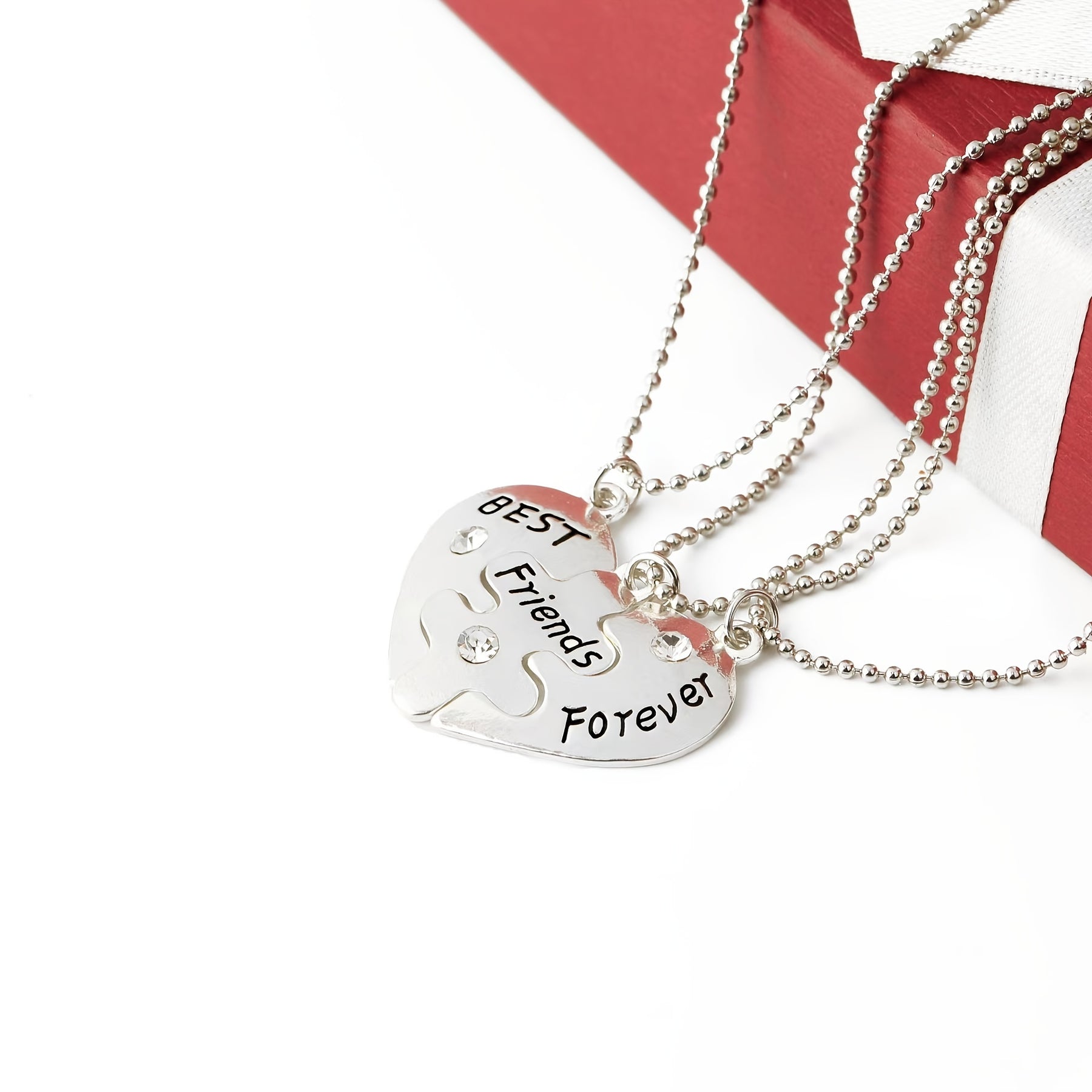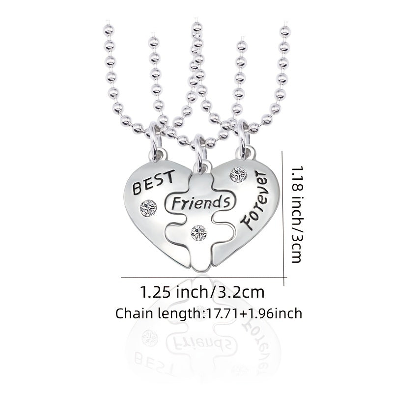 This set of 3 puzzle heart pendant necklaces is perfect for sharing with your friends. Show your connection and bond with these matching necklaces.