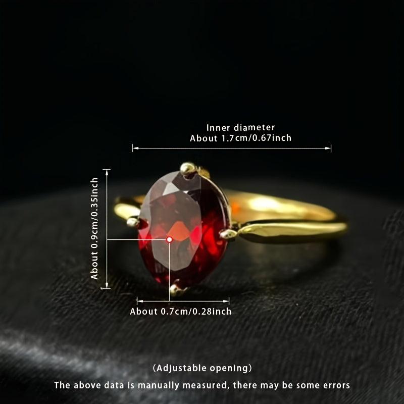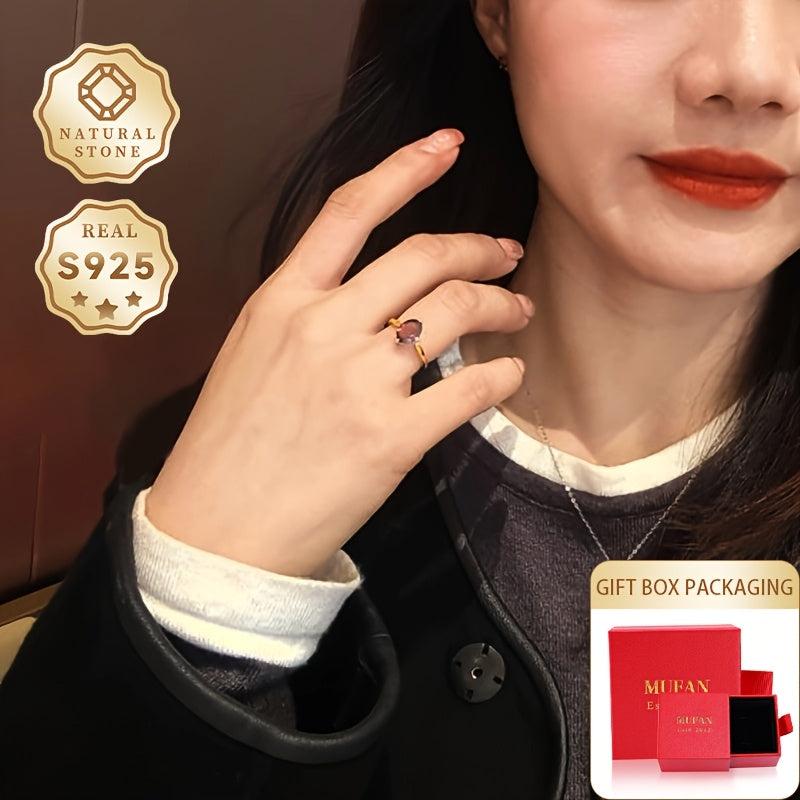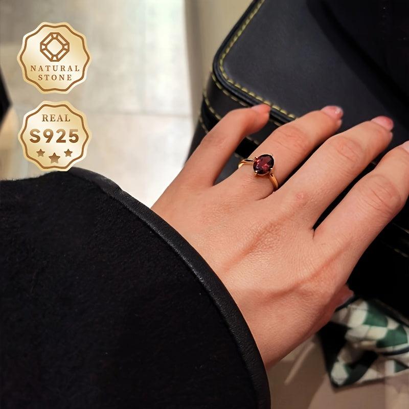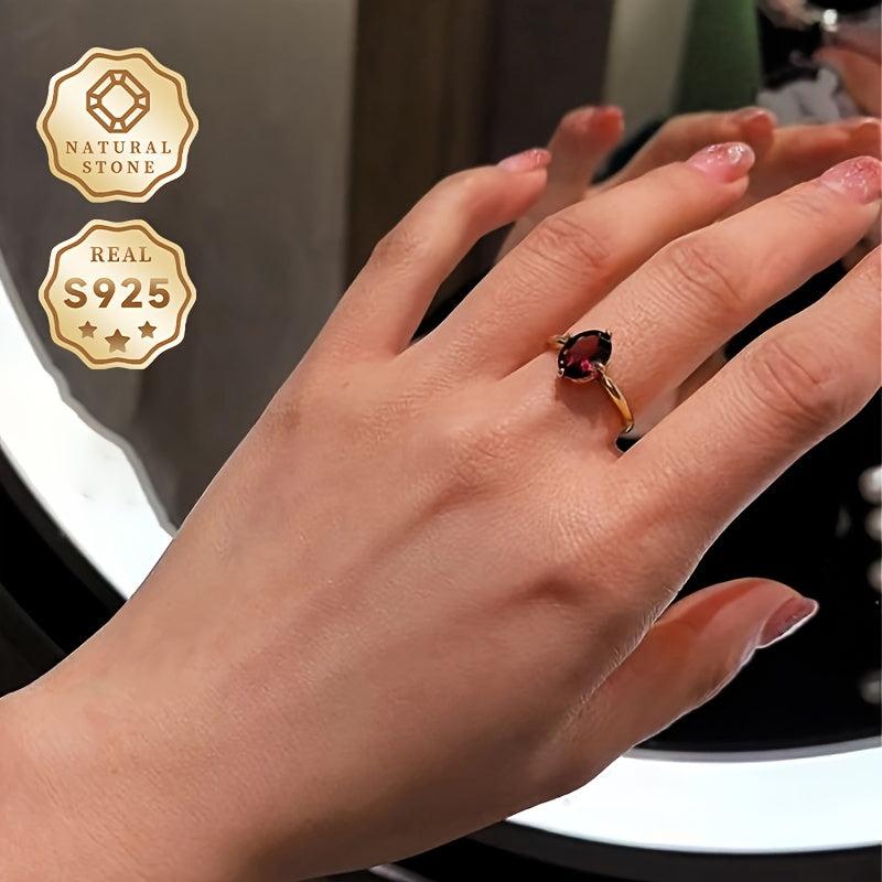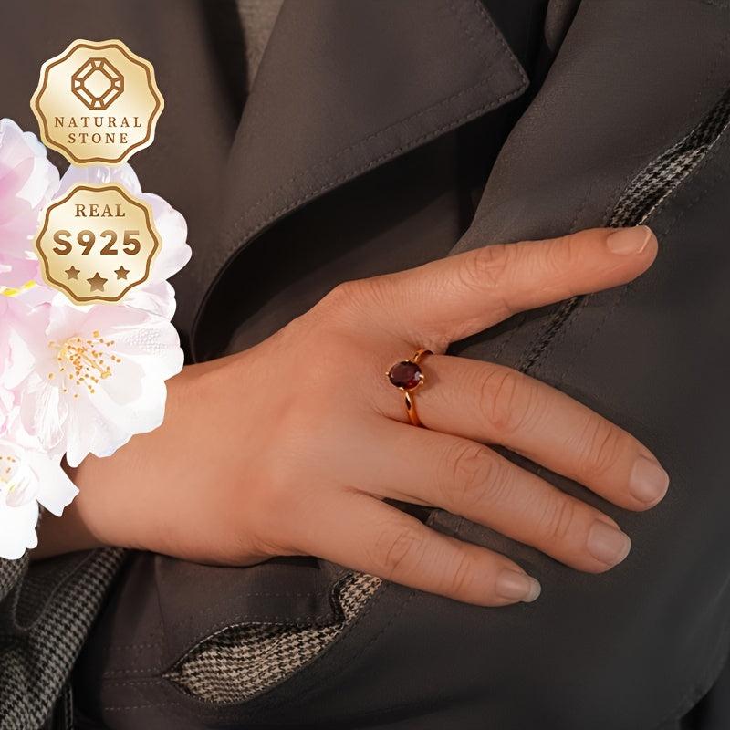 Natural stone garnet ring with random patterns and colors. Perfect gift for women with an elegant design.