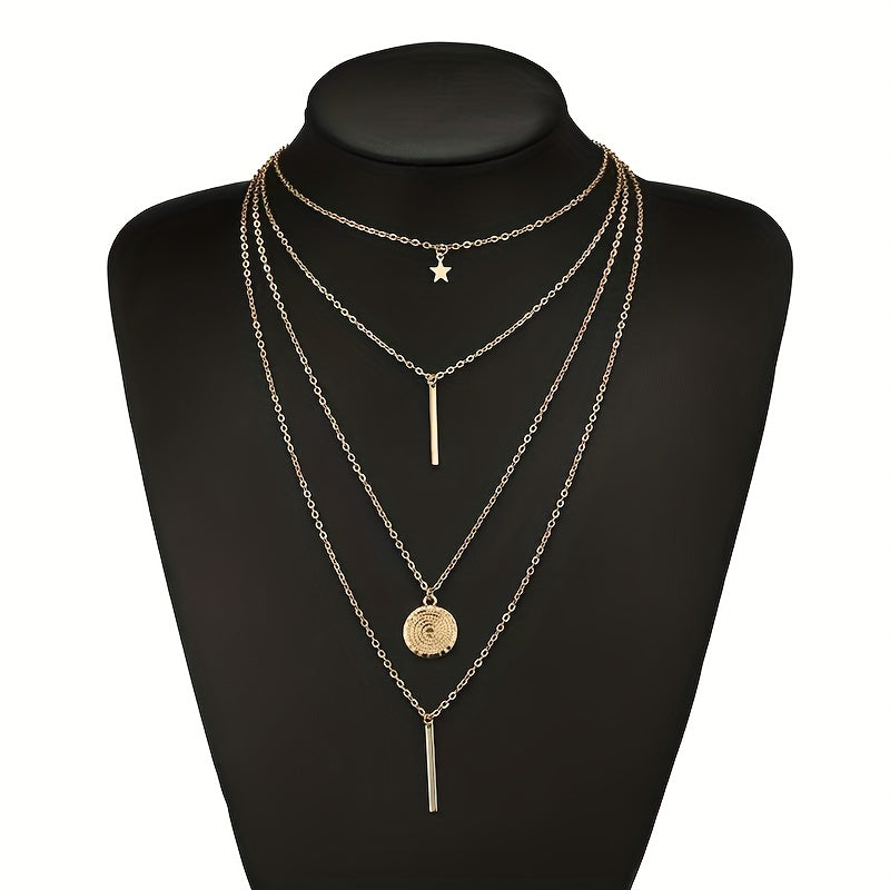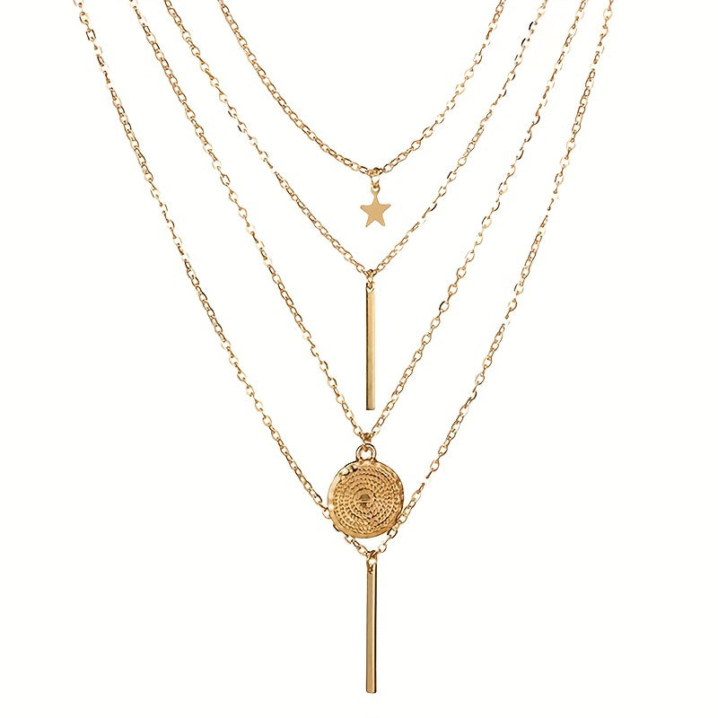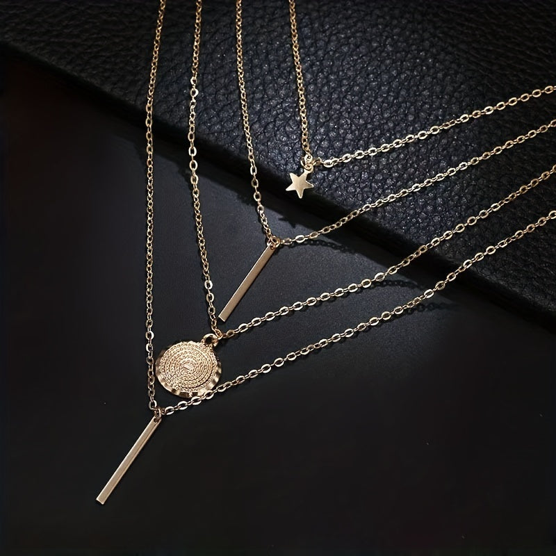 Elevate your style with this hip hop gothic necklace set featuring a geometric pendant and multilayer design. Perfect for adding edgy flair to your outfit.