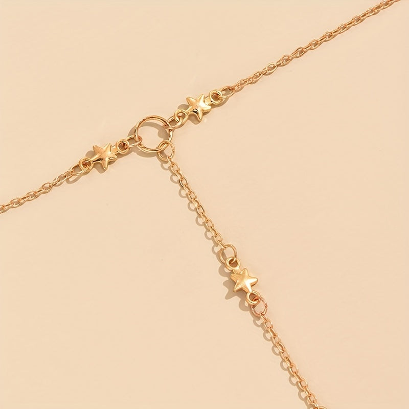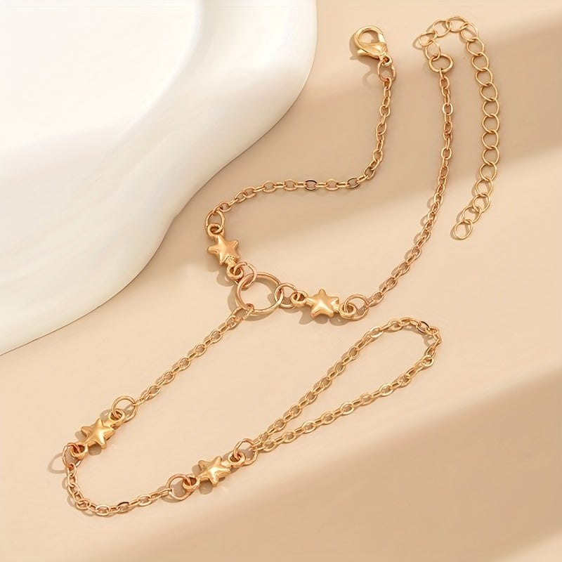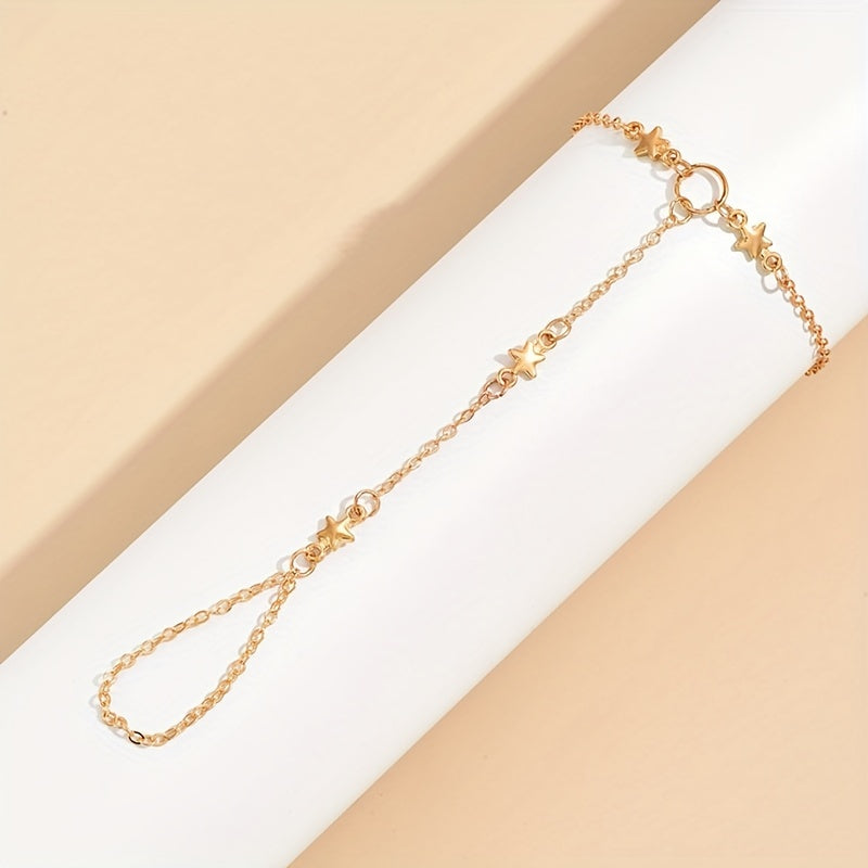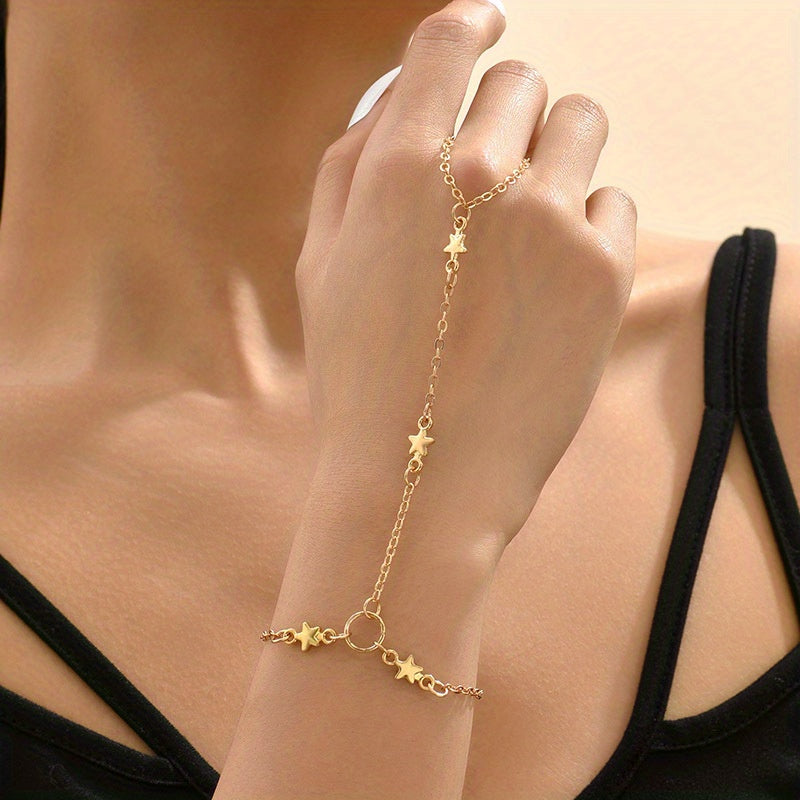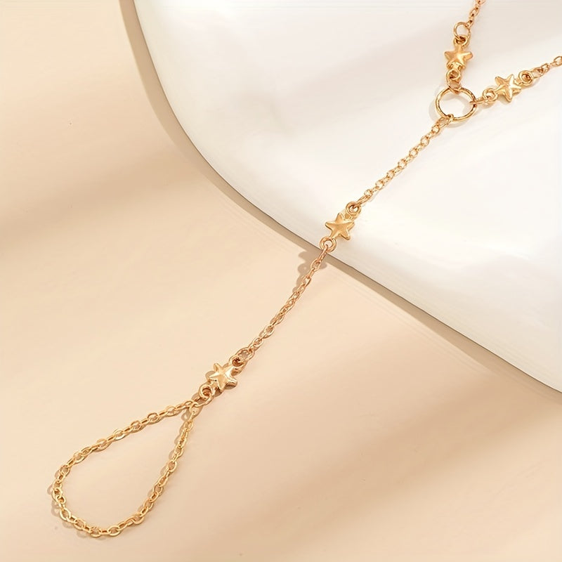 Elegant and trendy hand jewelry featuring a geometric star design. Made with high-quality materials, this chain bracelet adds a touch of sophistication to any outfit.